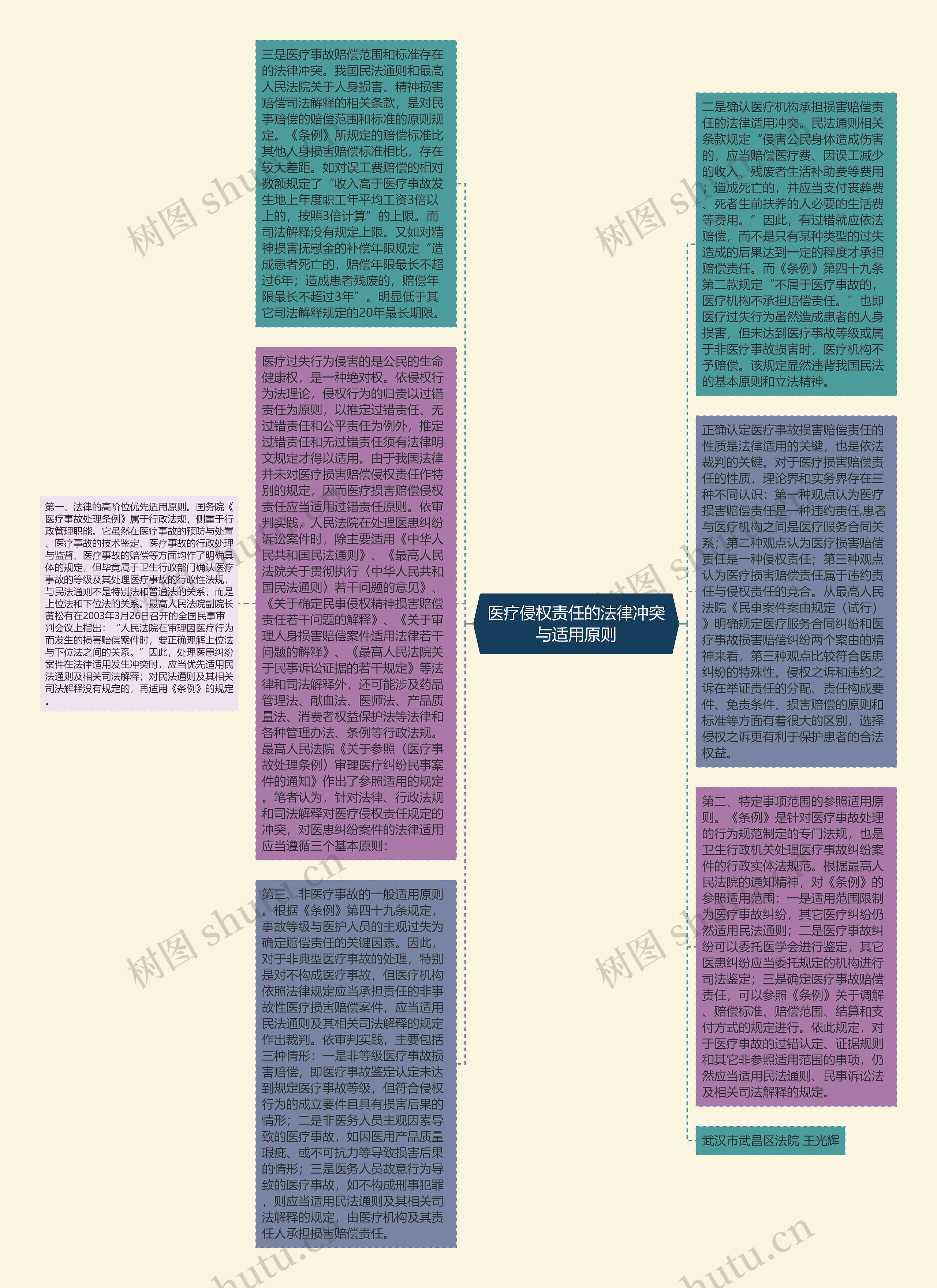 医疗过失行为侵害的是公民的生命健康权,是一种绝对权。依侵权行为法理论,侵权行为的归责以过错责任为原则,以推定过错责任、无过错责任和公平责任为例外,推定过错责任和无过错责任须有法律明文规定才得以适用。由于我国法律并未对医疗损害赔偿侵权责任作特别的规定,因而医疗损害赔偿侵权责任应当适用过错责任原则。依审判实践,人民法院在处理医患纠纷诉讼案件时,除主要适用《中华人民共和国民法通则》、《最高人民法院关于贯彻执行〈中华人民共和国民法通则〉若干问题的意见》、《关于确定民事侵权精神损害赔偿责任若干问题的解释》、《关于审理人身损害赔偿案件适用法律若干问题的解释》、《最高人民法院关于民事诉讼证据的若干规定》等法律和司法解释外,还可能涉及药品管理法、献血法、医师法、产品质量法、消费者权益保护法等法律和各种管理办法、条例等行政法规。最高人民法院《关于参照〈医疗事故处理条例〉审理医疗纠纷民事案件的通知》作出了参照适用的规定。笔者认为,针对法律、行政法规和司法解释对医疗侵权责任规定的冲突,对医患纠纷案件的法律适用应当遵循三个基本原则: