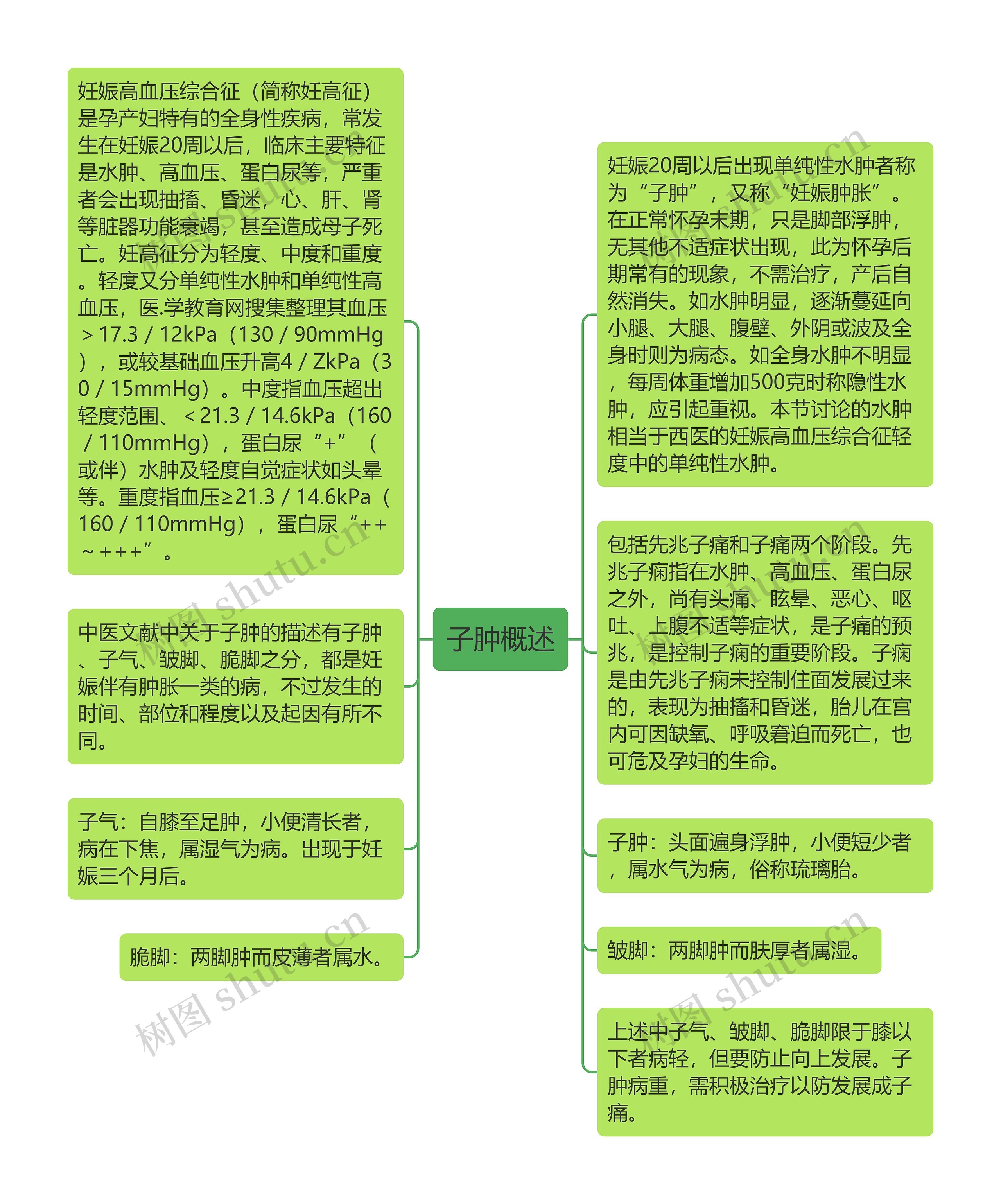 中医文献中关于子肿的描述有子肿、子气、皱脚、脆脚之分,都是妊娠伴有肿胀一类的病,不过发生的时间、部位和程度以及起因有所不同。