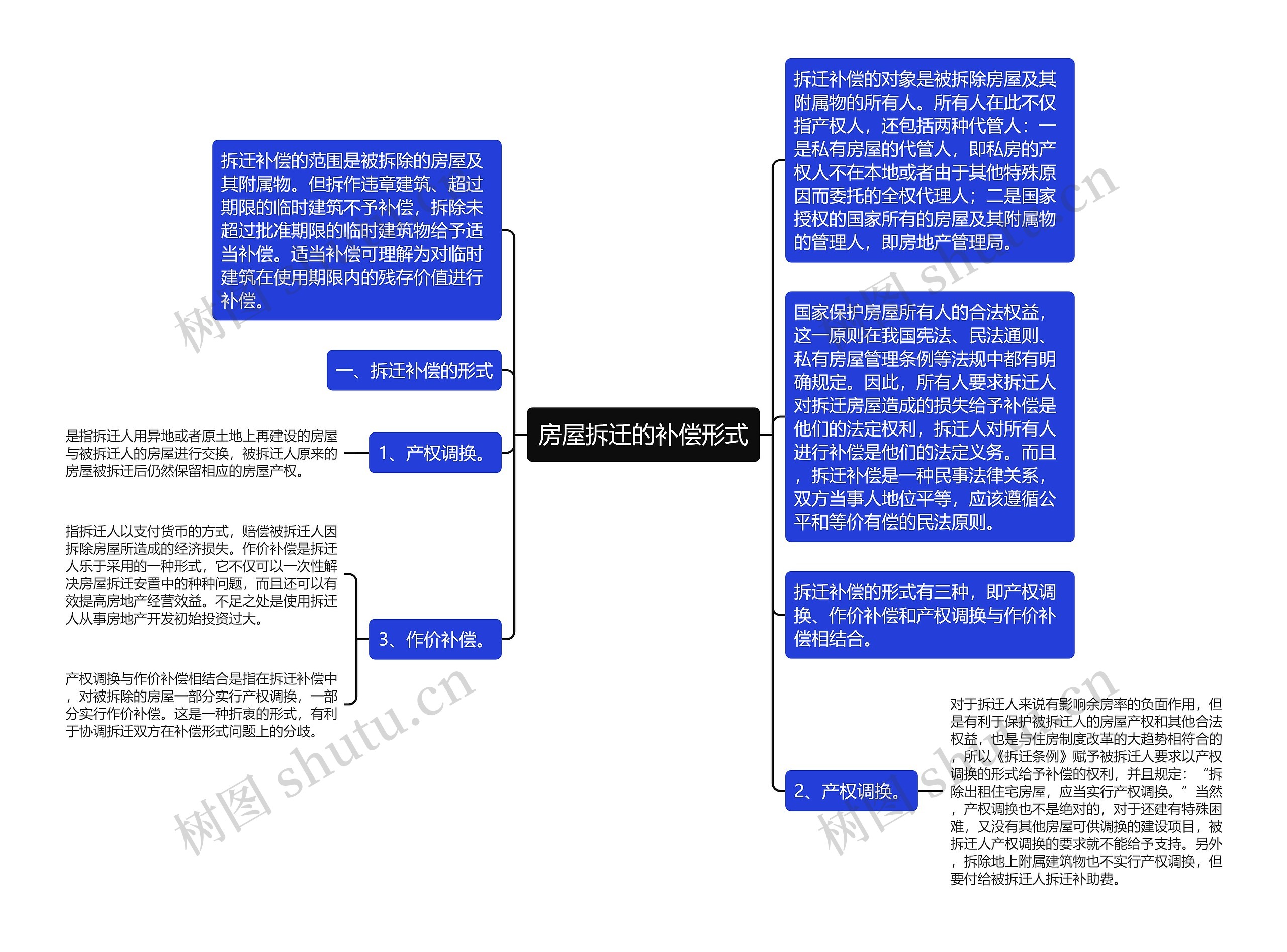 拆迁补偿的形式有三种,即产权调换、作价补偿和产权调换与作价补偿相结合。