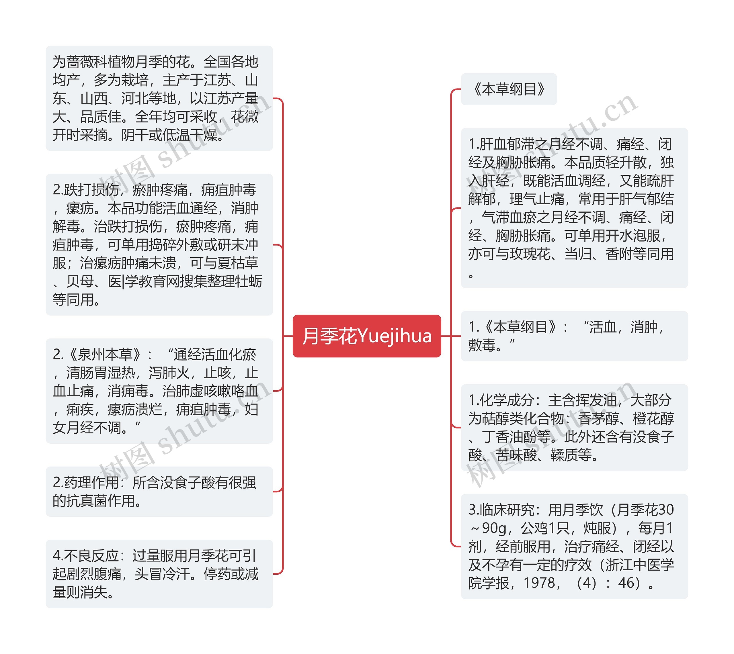 3.临床研究:用月季饮(月季花30~90g,公鸡1只,炖服),每月1剂,经前服用,治疗痛经、闭经以及不孕有一定的疗效(浙江中医学院学报,1978,(4):46)。