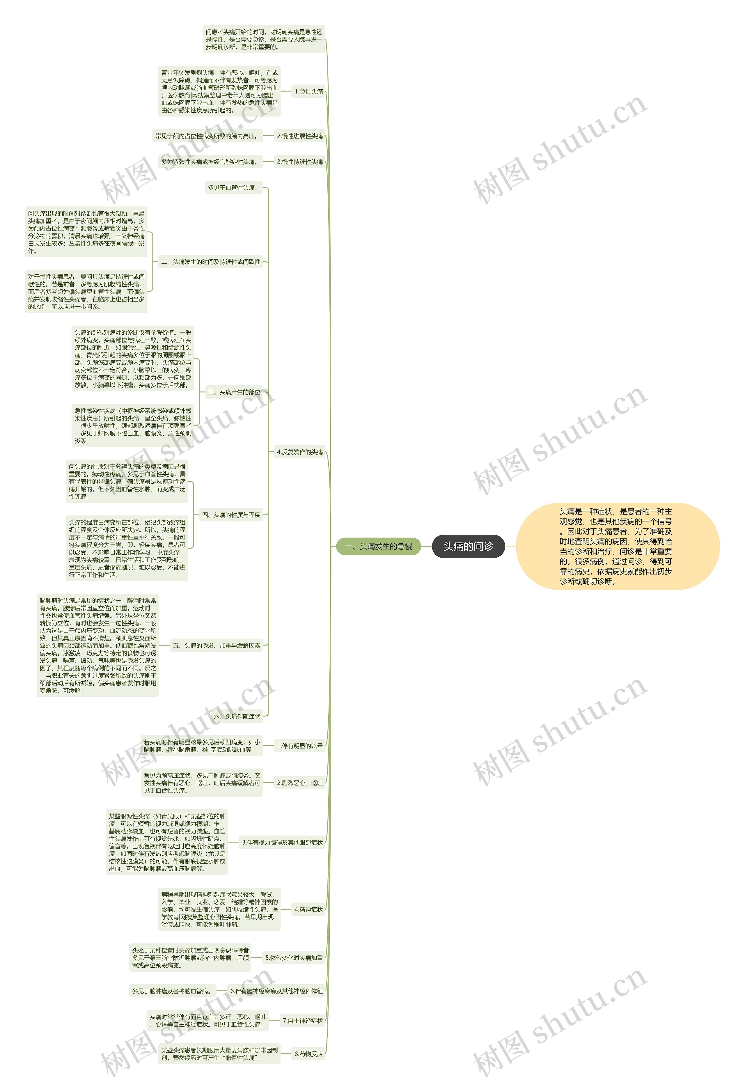 树图思维导图提供《头痛的问诊》在线思维导图免费制作,点击“编辑”按钮,可对《头痛的问诊》进行在线思维导图编辑,本思维导图属于思维导图模板主题,文件编号是:fd5514436f51dda47d03d16eaa0aa110