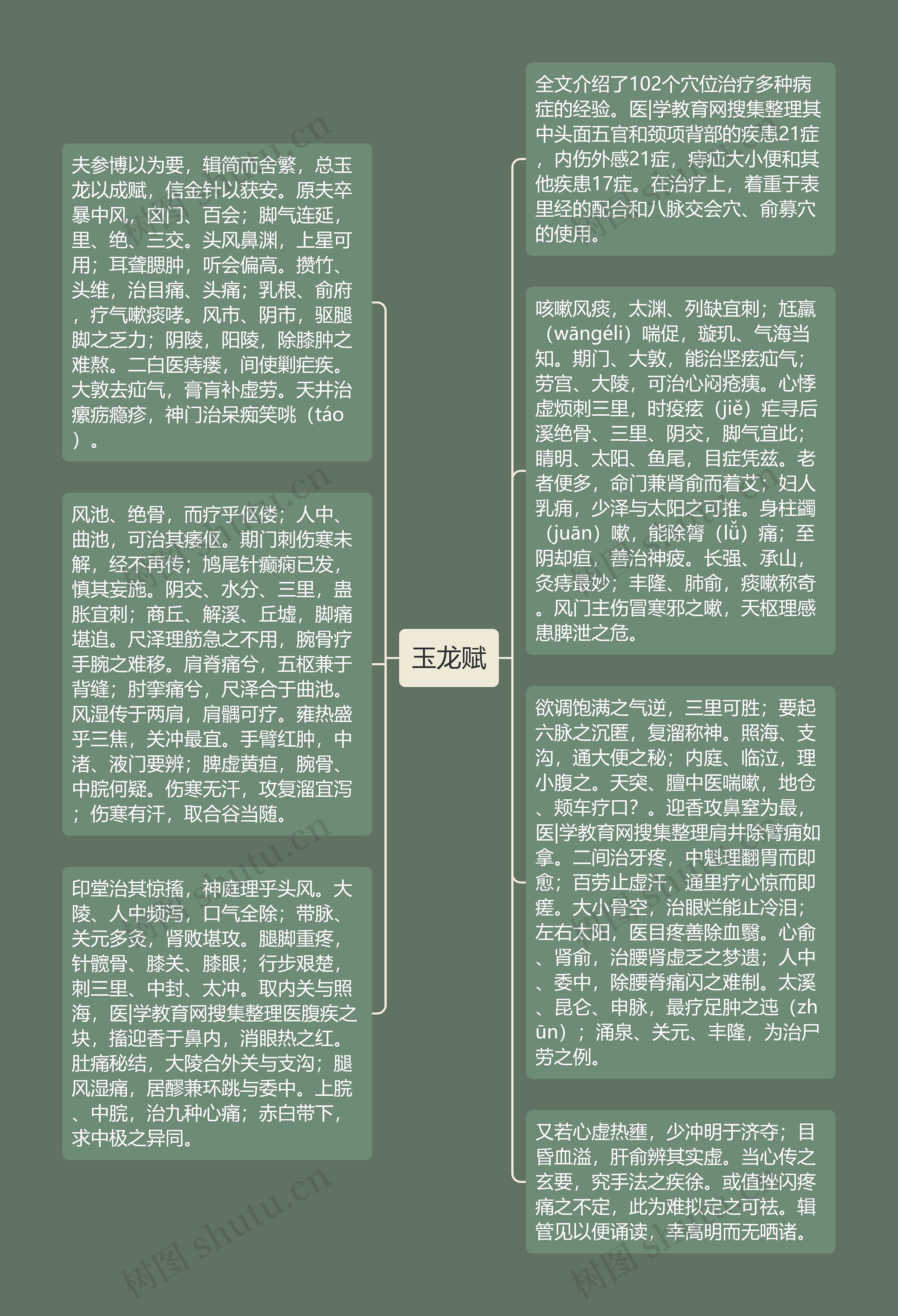 夫参博以为要,辑简而舍繁,总玉龙以成赋,信金针以获安。原夫卒暴中风,囟门、百会;脚气连延,里、绝、三交。头风鼻渊,上星可用;耳聋腮肿,听会偏高。攒竹、头维,治目痛、头痛;乳根、俞府,疗气嗽痰哮。风市、阴市,驱腿脚之乏力;阴陵,阳陵,除膝肿之难熬。二白医痔瘘,间使剿疟疾。大敦去疝气,膏肓补虚劳。天井治瘰疬瘾疹,神门治呆痴笑咷(táo)。