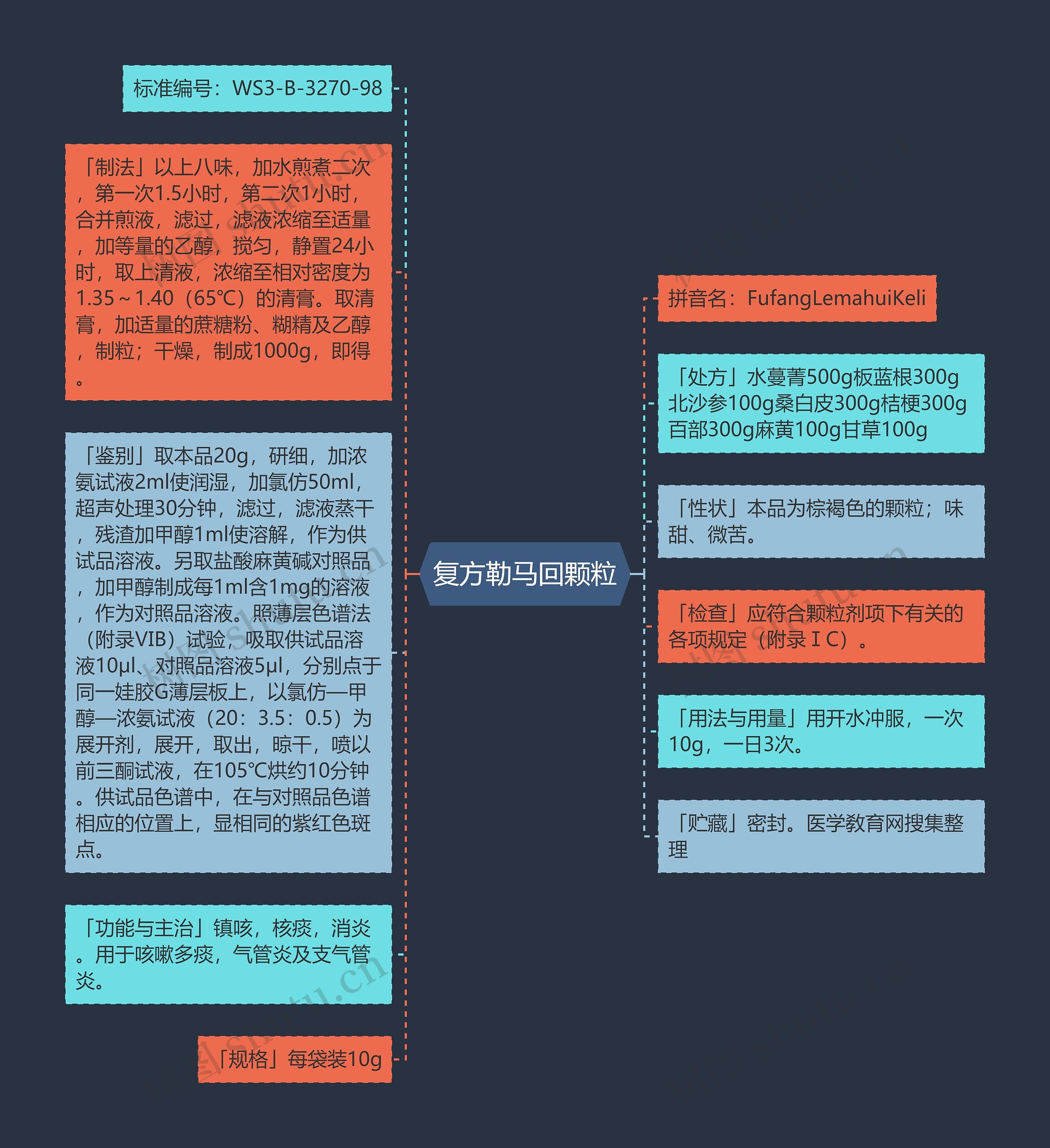 树图思维导图提供《复方勒马回颗粒》在线思维导图免费制作,点击“编辑”按钮,可对《复方勒马回颗粒》进行在线思维导图编辑,本思维导图属于思维导图模板主题,文件编号是:16b8288f0beeaba48794629c2b53f806