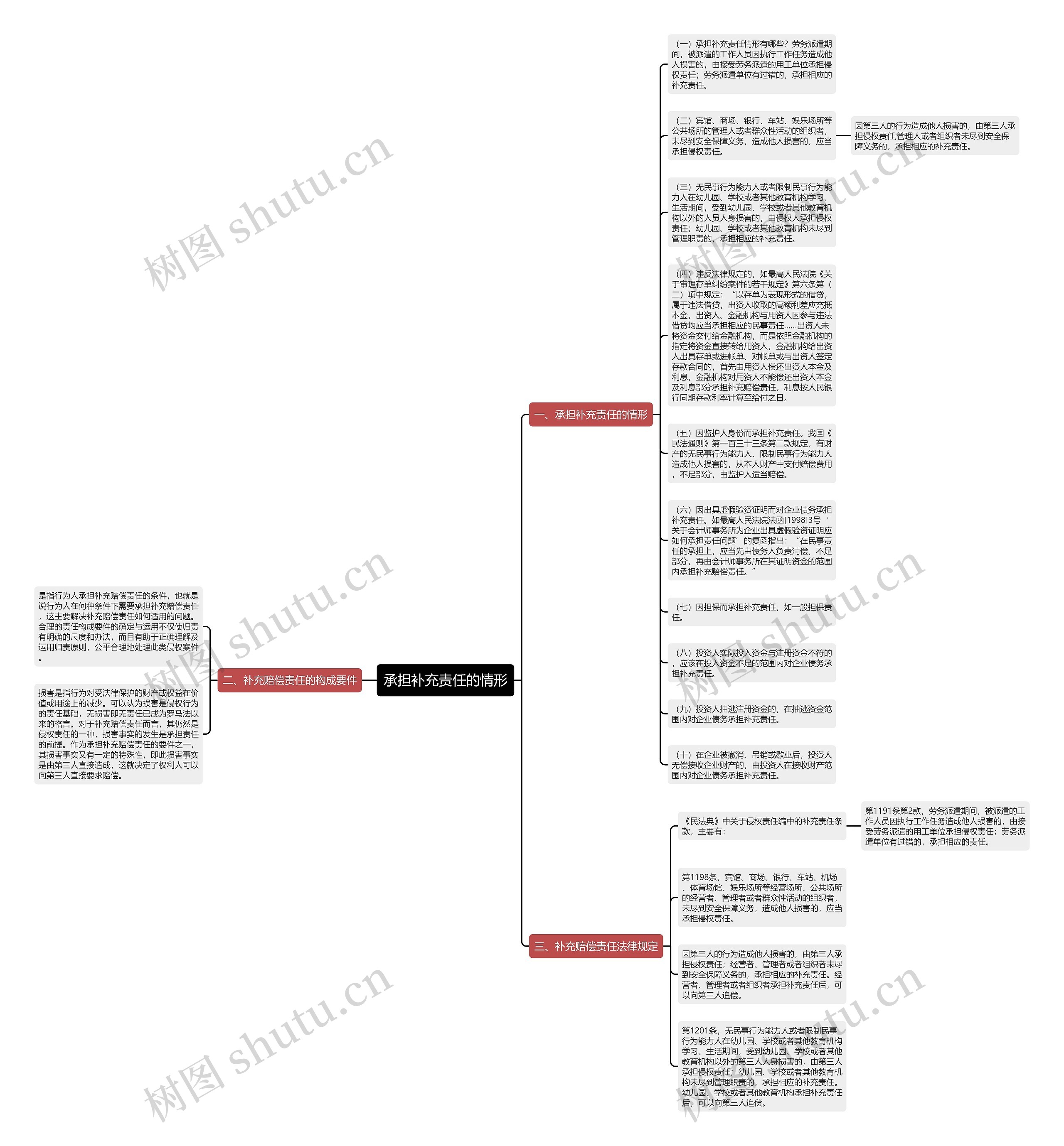 (五)因监护人身份而承担补充责任。我国《民法通则》第一百三十三条第二款规定,有财产的无民事行为能力人、限制民事行为能力人造成他人损害的,从本人财产中支付赔偿费用,不足部分,由监护人适当赔偿。