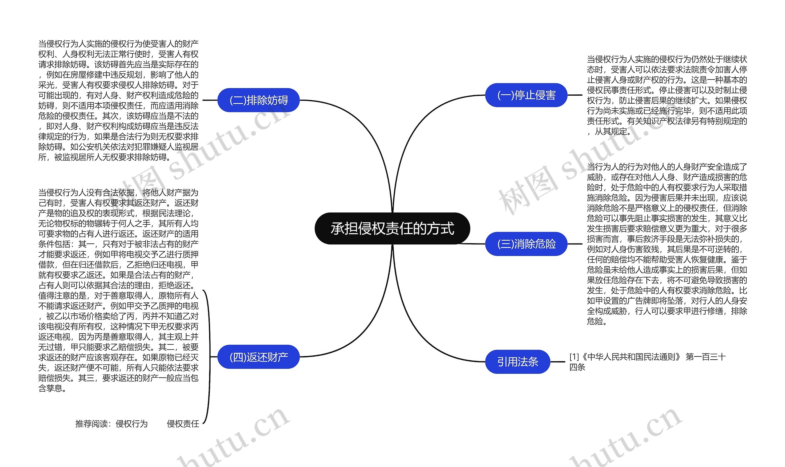 树图思维导图提供《承担侵权责任的方式》在线思维导图免费制作,点击“编辑”按钮,可对《承担侵权责任的方式》进行在线思维导图编辑,本思维导图属于思维导图模板主题,文件编号是:d916f9523de824b7c873bbb4ce0cb250