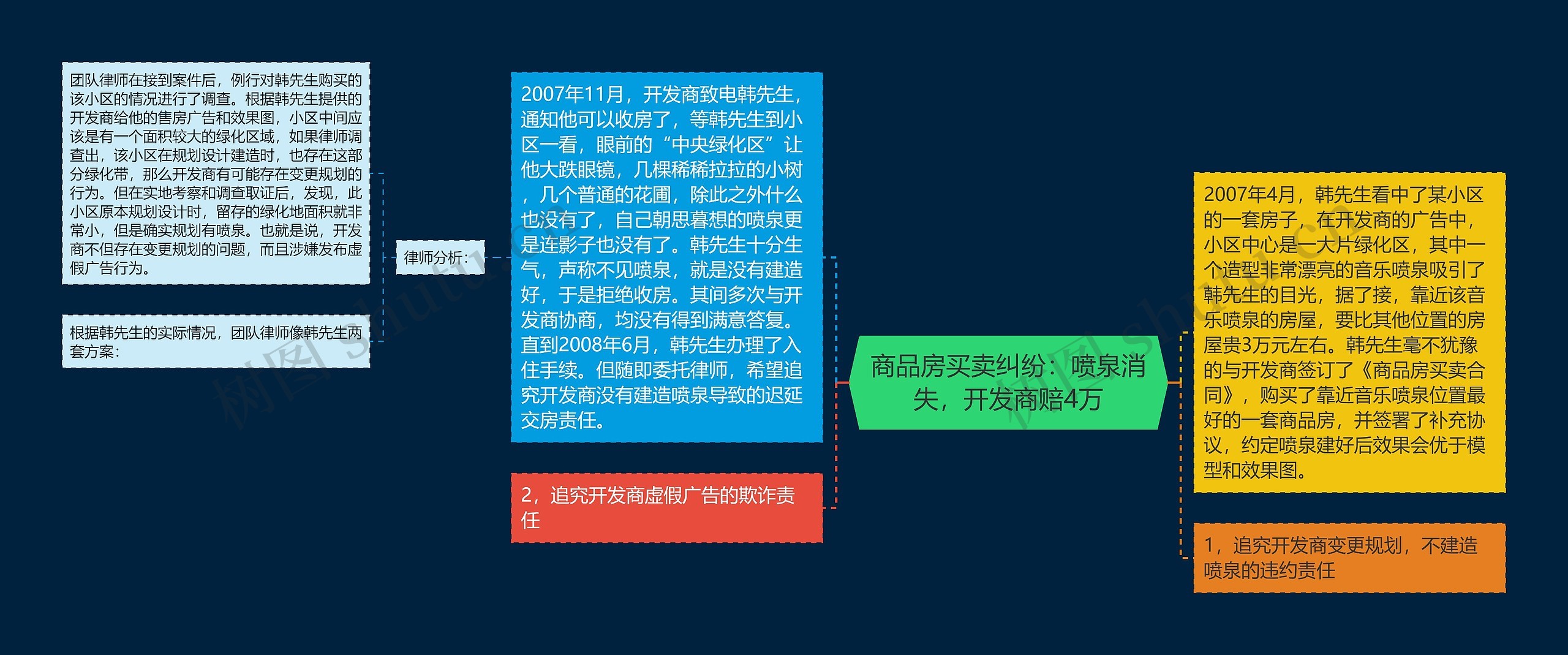 树图思维导图提供《商品房买卖纠纷:喷泉消失,开发商赔4万》在线思维导图免费制作,点击“编辑”按钮,可对《商品房买卖纠纷:喷泉消失,开发商赔4万》进行在线思维导图编辑,本思维导图属于思维导图模板主题,文件编号是:011f57d6bcb7bbc8d322aeb2d0c2f798