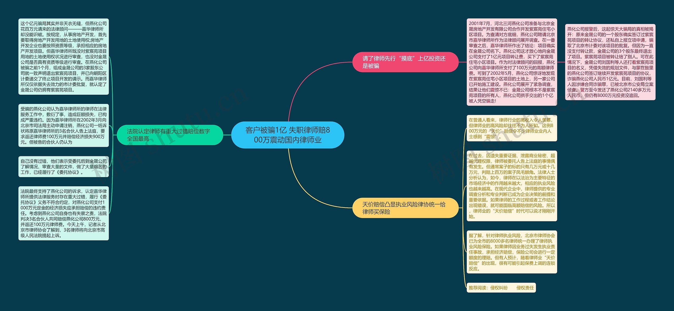 树图思维导图提供《客户被骗1亿 失职律师赔800万震动国内律师业》在线思维导图免费制作,点击“编辑”按钮,可对《客户被骗1亿 失职律师赔800万震动国内律师业》进行在线思维导图编辑,本思维导图属于思维导图模板主题,文件编号是:5f7134a651938b793306d5123bf15851