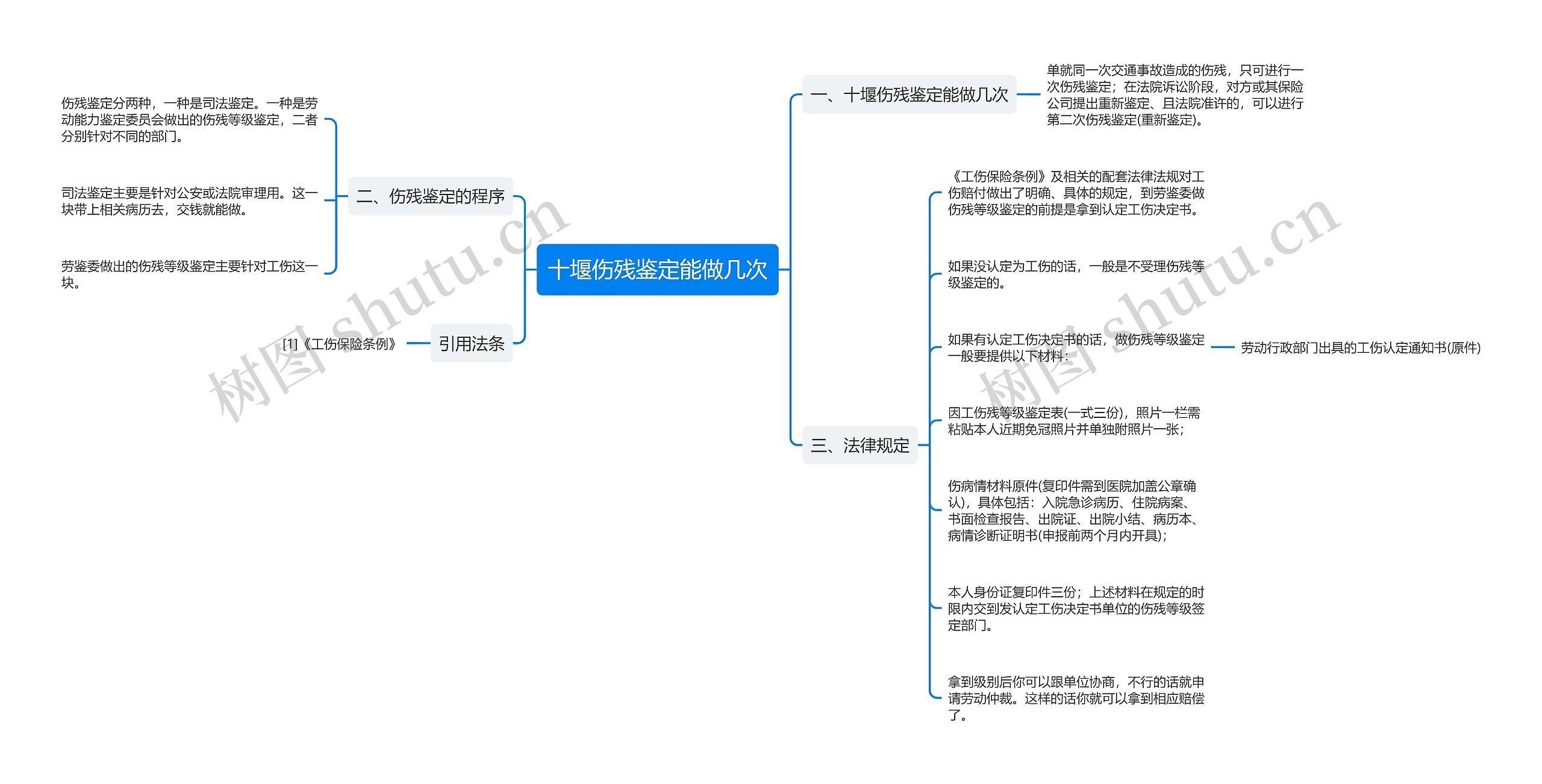 树图思维导图提供《十堰伤残鉴定能做几次》在线思维导图免费制作,点击“编辑”按钮,可对《十堰伤残鉴定能做几次》进行在线思维导图编辑,本思维导图属于思维导图模板主题,文件编号是:da4f780f1ff1932312a987576204b88e