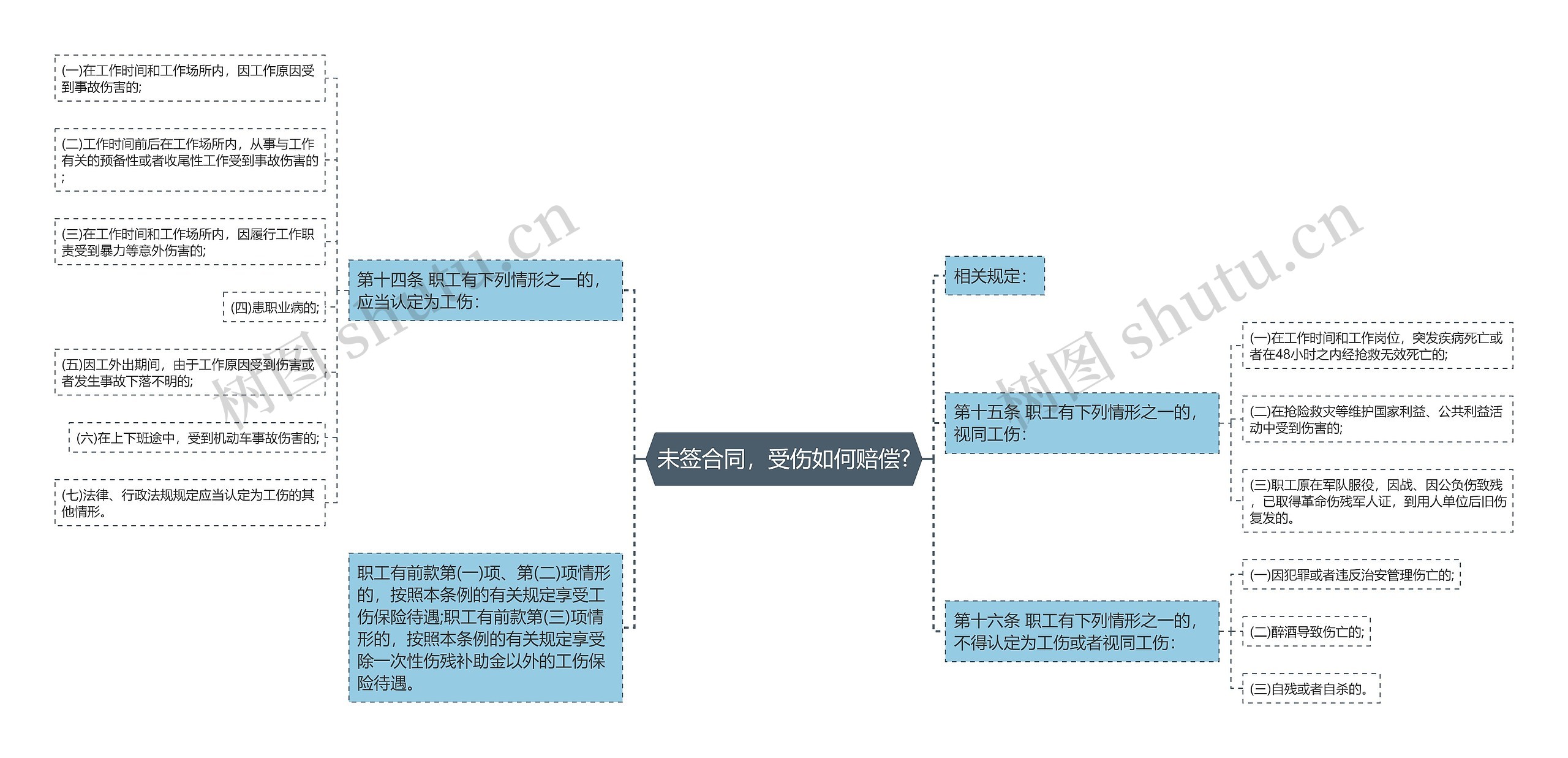 树图思维导图提供《未签合同,受伤如何赔偿?》在线思维导图免费制作,点击“编辑”按钮,可对《未签合同,受伤如何赔偿?》进行在线思维导图编辑,本思维导图属于思维导图模板主题,文件编号是:a5ef414fde5415b5c4f92934d9fb6d13