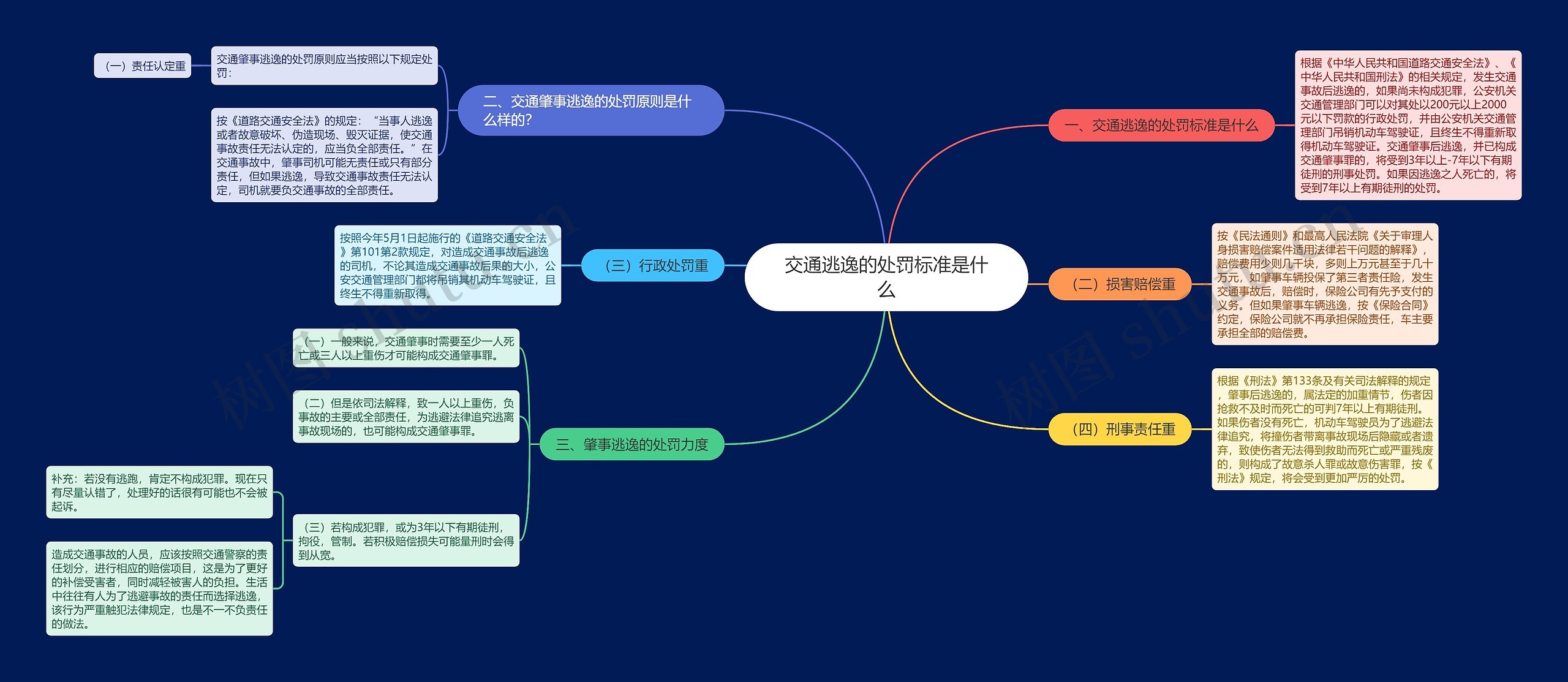 树图思维导图提供《交通逃逸的处罚标准是什么》在线思维导图免费制作,点击“编辑”按钮,可对《交通逃逸的处罚标准是什么》进行在线思维导图编辑,本思维导图属于思维导图模板主题,文件编号是:bf8ffc049927cce483d92c86ab29e033
