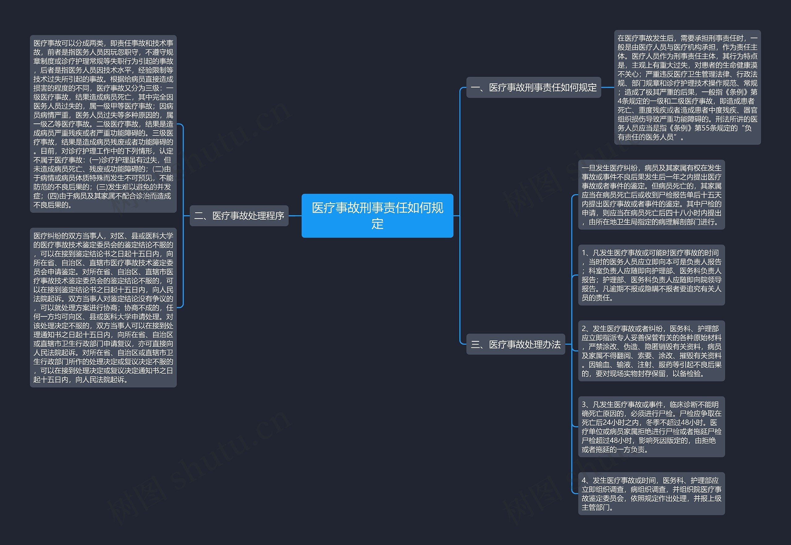 树图思维导图提供《医疗事故刑事责任如何规定》在线思维导图免费制作,点击“编辑”按钮,可对《医疗事故刑事责任如何规定》进行在线思维导图编辑,本思维导图属于思维导图模板主题,文件编号是:d5282a9c08c10f68a44b33048e82cef9