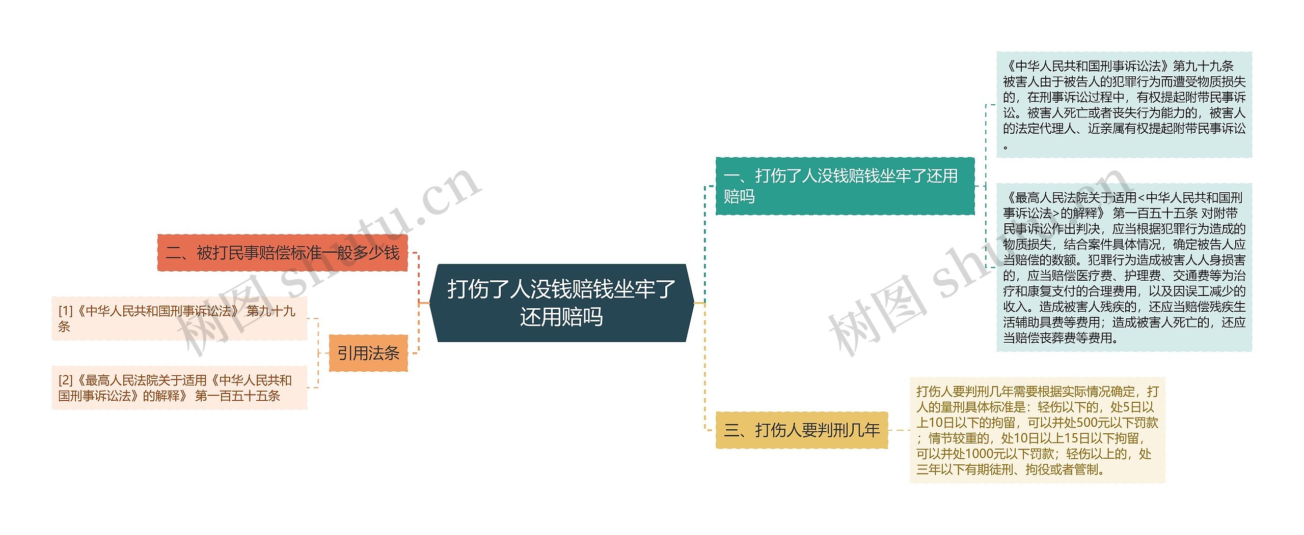 树图思维导图提供《打伤了人没钱赔钱坐牢了还用赔吗》在线思维导图免费制作,点击“编辑”按钮,可对《打伤了人没钱赔钱坐牢了还用赔吗》进行在线思维导图编辑,本思维导图属于思维导图模板主题,文件编号是:a91474479c3bd1ab85e67b9ca2d030fd