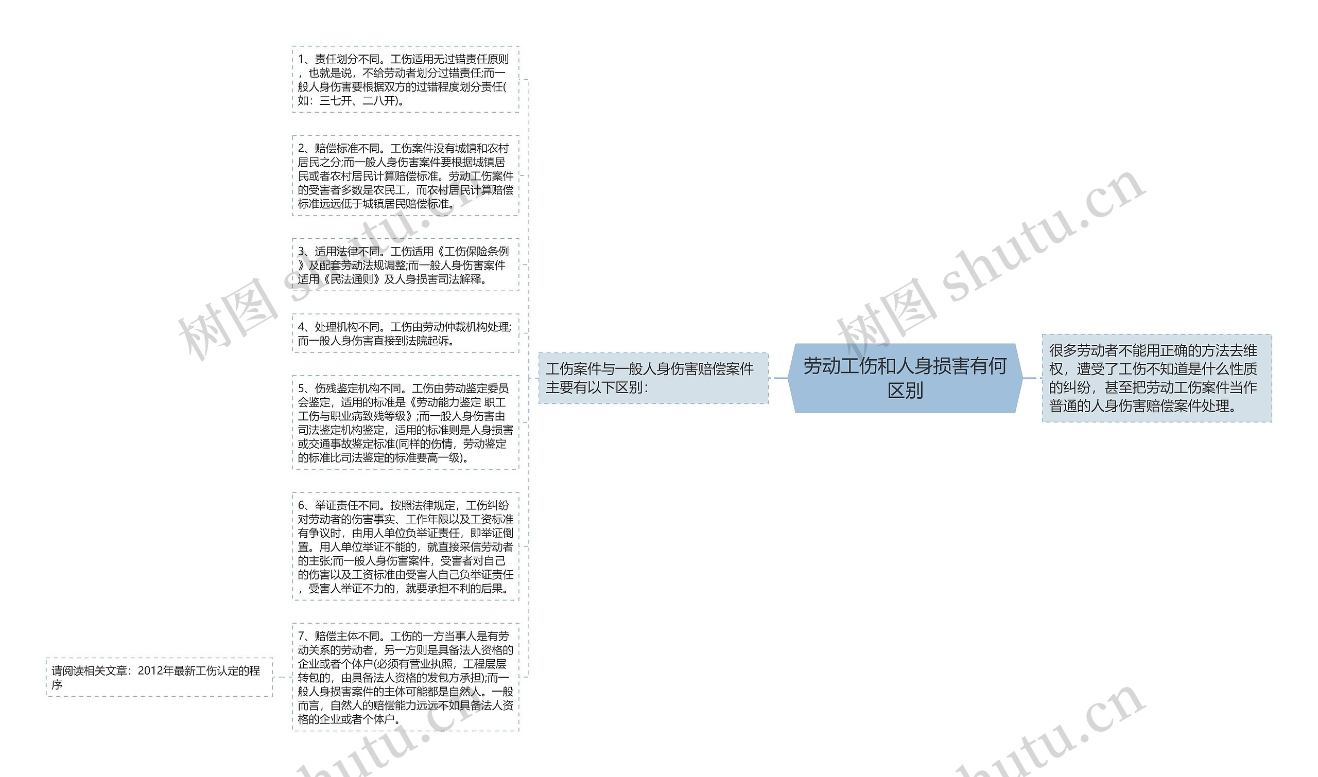 4、处理机构不同。工伤由劳动仲裁机构处理;而一般人身伤害直接到法院起诉。