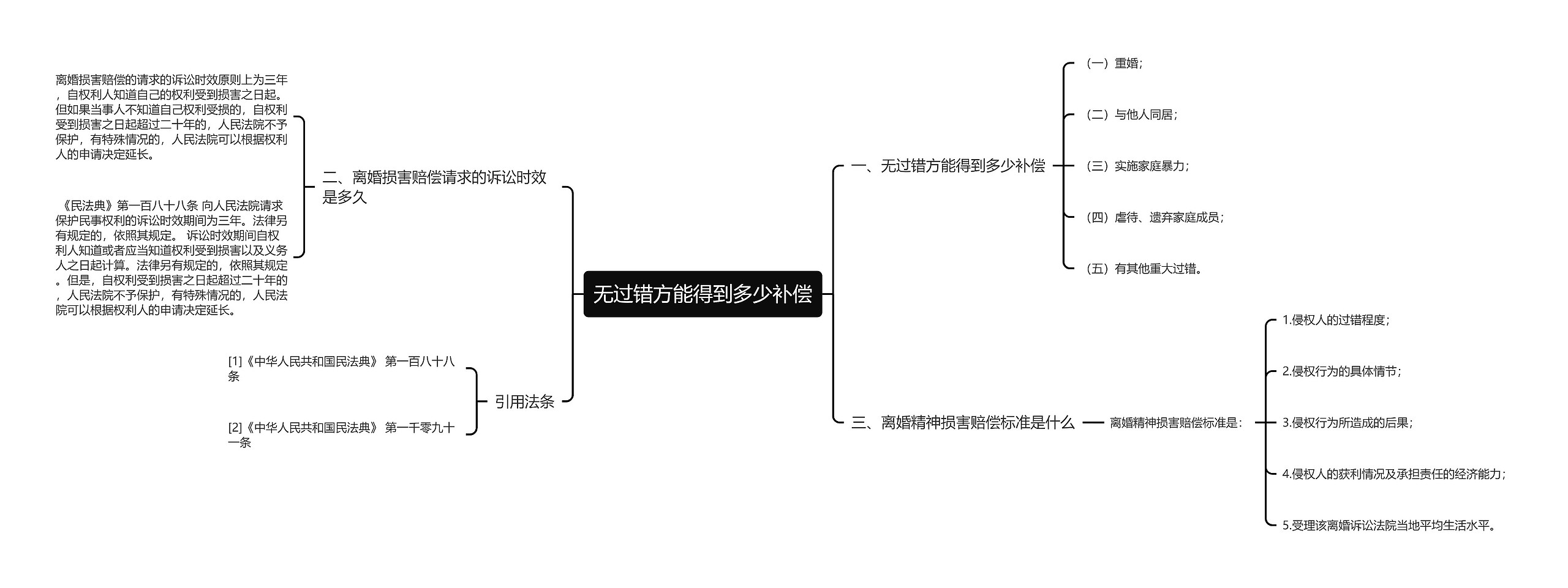 树图思维导图提供《无过错方能得到多少补偿》在线思维导图免费制作,点击“编辑”按钮,可对《无过错方能得到多少补偿》进行在线思维导图编辑,本思维导图属于思维导图模板主题,文件编号是:be4f0b0292488d015f4a5b90af8f447f