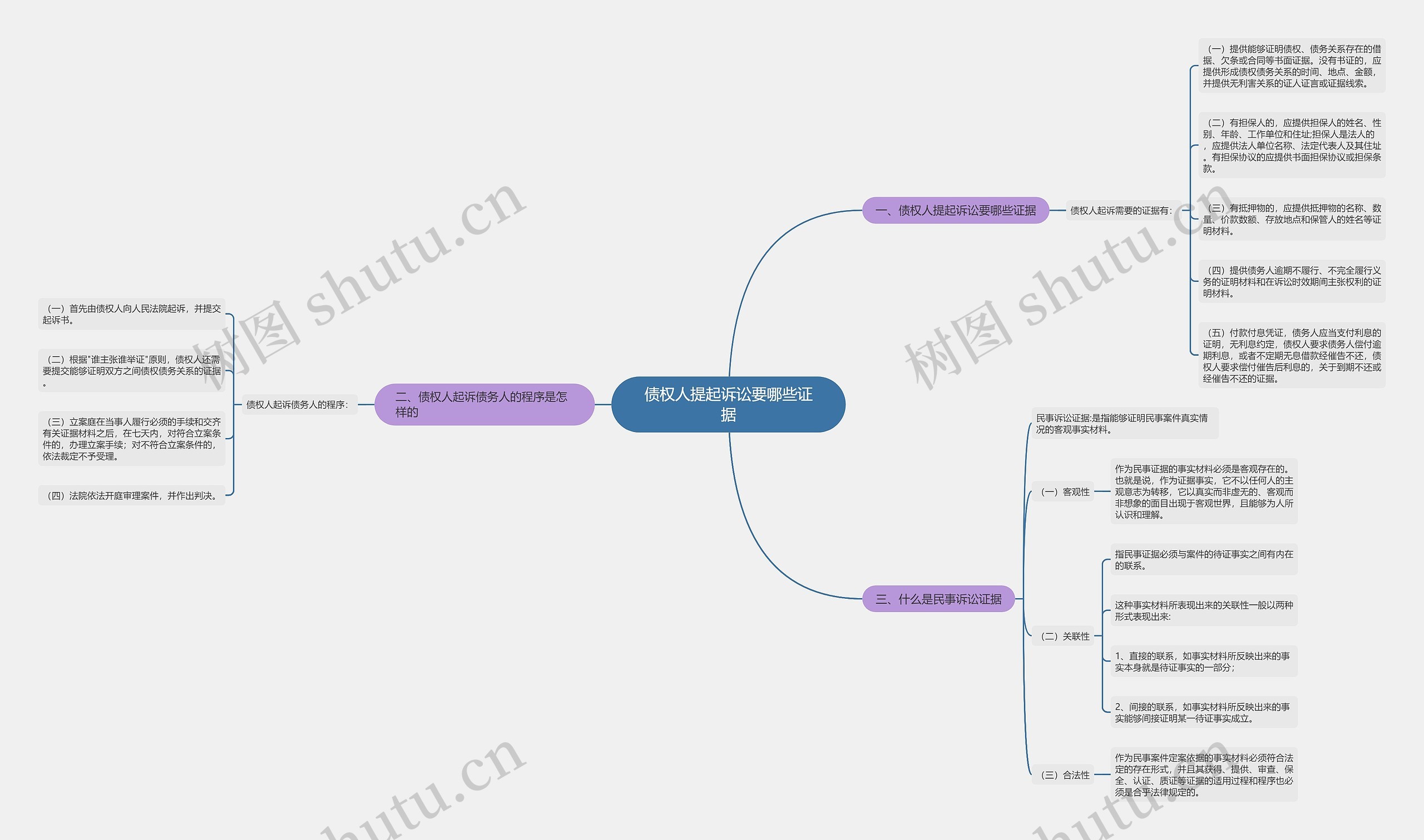 在现实生活中,我们都知道对债权人的存在,一般都是债务人向债权人进行借贷的。那么债权人提起诉讼要哪些证据?什么是民事诉讼证据?为了帮助大家更好的了解相关法律知识,树图网小编整理了相关的内容,我们一起来了解一下吧。
