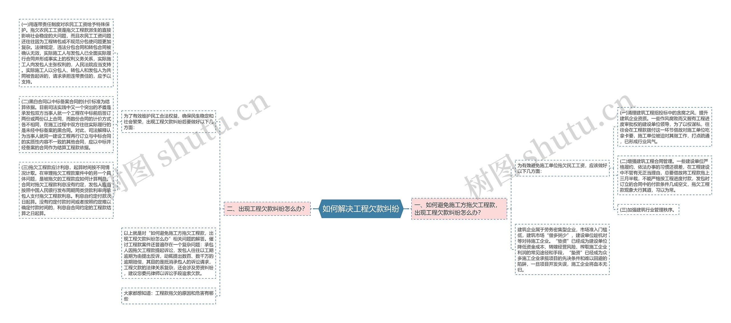 树图思维导图提供《如何解决工程欠款纠纷》在线思维导图免费制作,点击“编辑”按钮,可对《如何解决工程欠款纠纷》进行在线思维导图编辑,本思维导图属于思维导图模板主题,文件编号是:b37a4b441d9a306f9d91bd8b318ac1fa