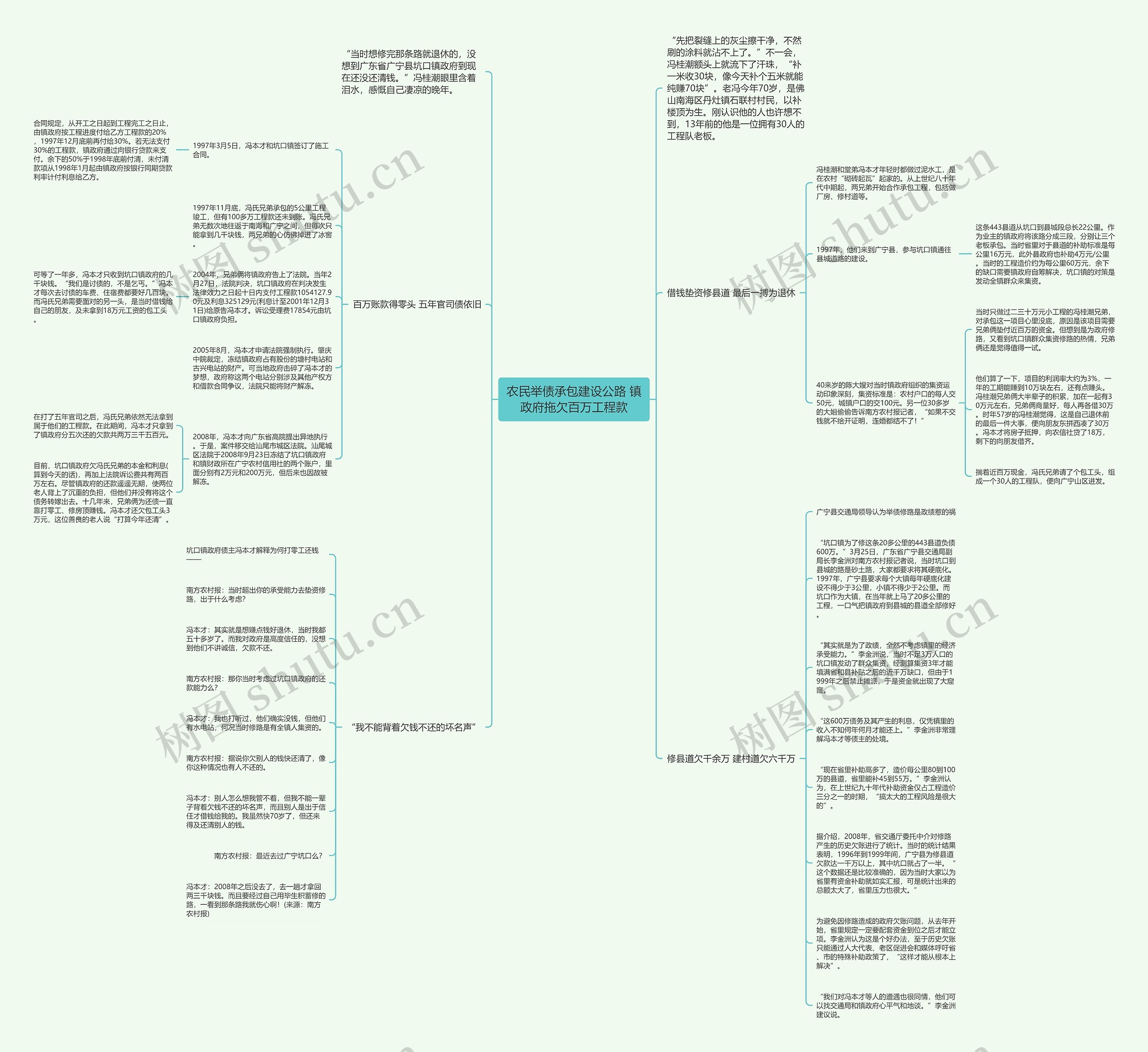 据介绍,2008年,省交通厅委托中介对修路产生的历史欠账进行了统计。当时的统计结果表明,1996年到1999年间,广宁县为修县道欠款达一千万以上,其中坑口就占了一半。“这个数据还是比较准确的,因为当时大家以为省里有资金补助就如实汇报,可是统计出来的总额太大了,省里压力也很大。”