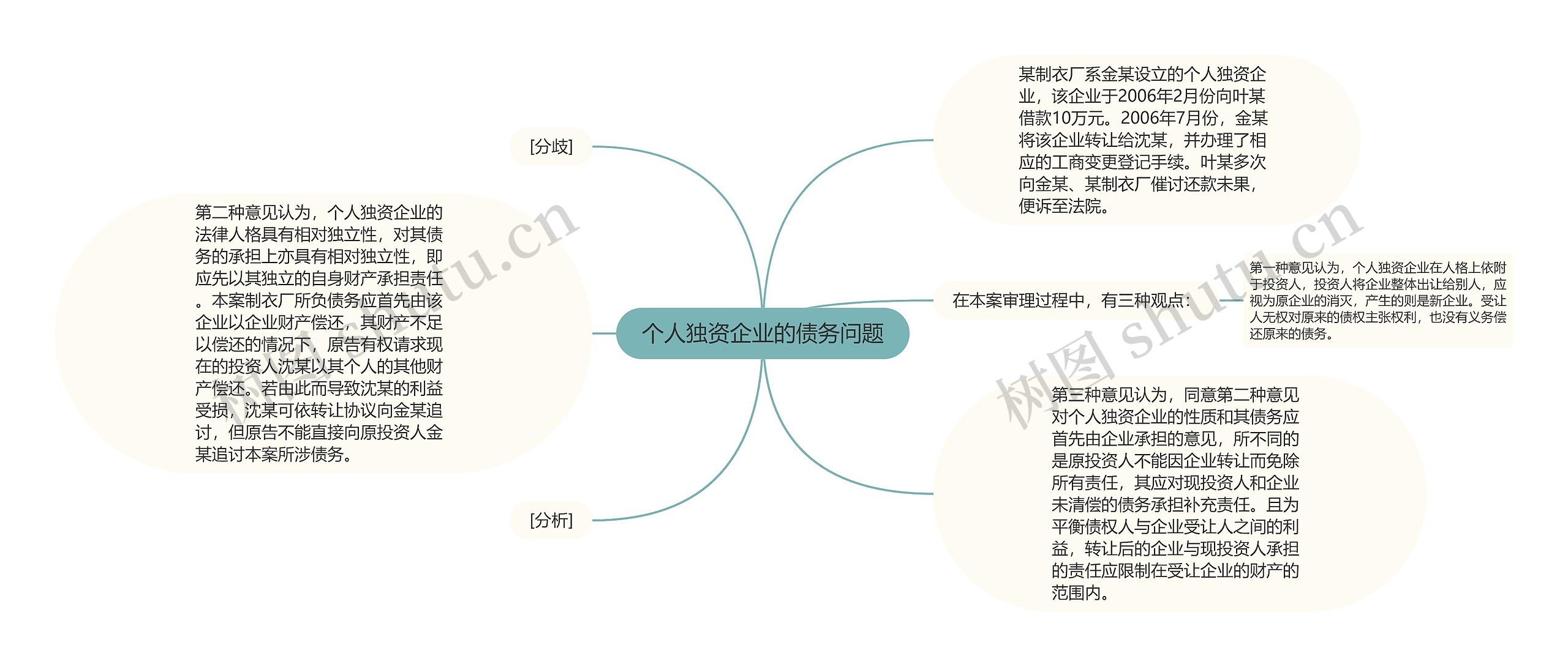 第一种意见认为,个人独资企业在人格上依附于投资人,投资人将企业整体出让给别人,应视为原企业的消灭,产生的则是新企业。受让人无权对原来的债权主张权利,也没有义务偿还原来的债务。