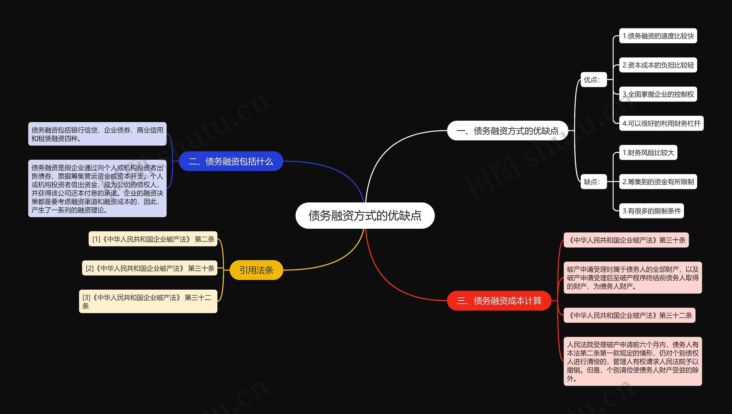 树图思维导图提供《债务融资方式的优缺点》在线思维导图免费制作,点击“编辑”按钮,可对《债务融资方式的优缺点》进行在线思维导图编辑,本思维导图属于思维导图模板主题,文件编号是:cfe7dbd278b17c10c9fcae1b6061b6bb
