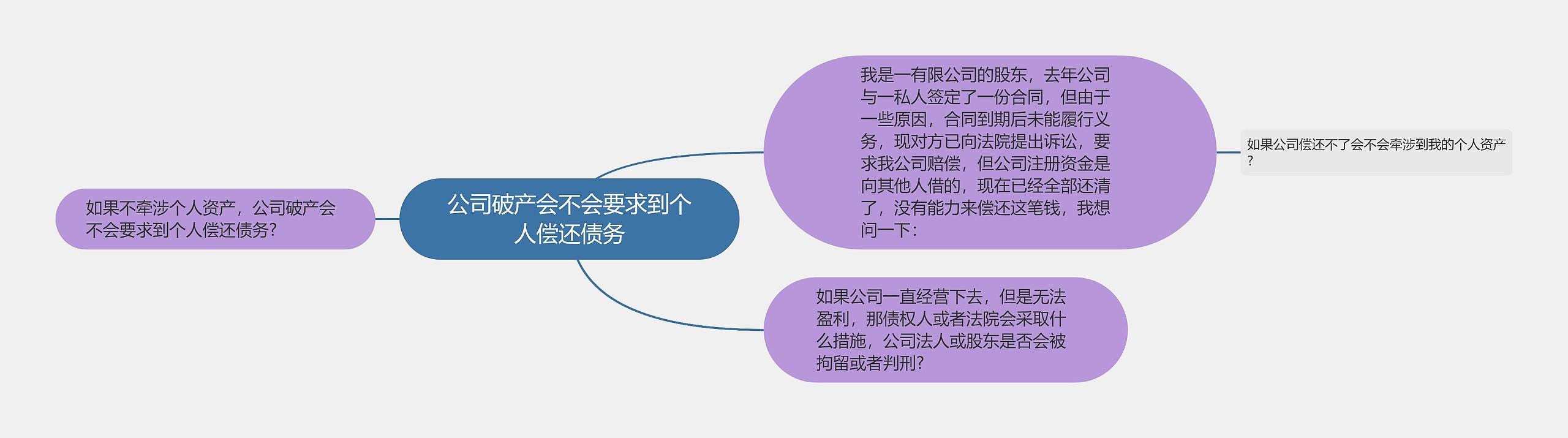 树图思维导图提供《公司破产会不会要求到个人偿还债务》在线思维导图免费制作,点击“编辑”按钮,可对《公司破产会不会要求到个人偿还债务》进行在线思维导图编辑,本思维导图属于思维导图模板主题,文件编号是:d37739292fe227a19b3d590ec9ac2881