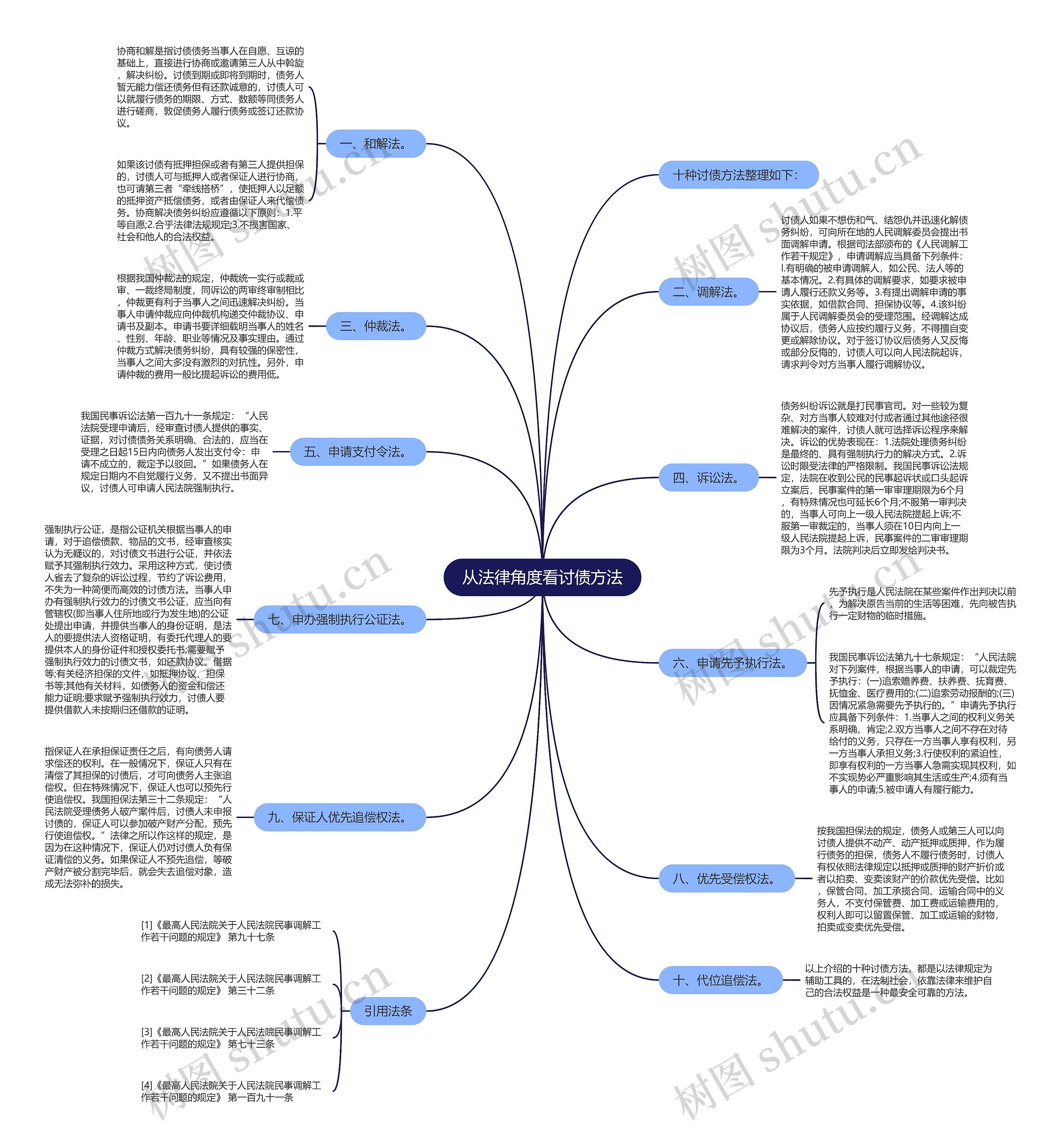 树图思维导图提供《从法律角度看讨债方法》在线思维导图免费制作,点击“编辑”按钮,可对《从法律角度看讨债方法》进行在线思维导图编辑,本思维导图属于思维导图模板主题,文件编号是:666980c013f735fc94a599a93bf497ad