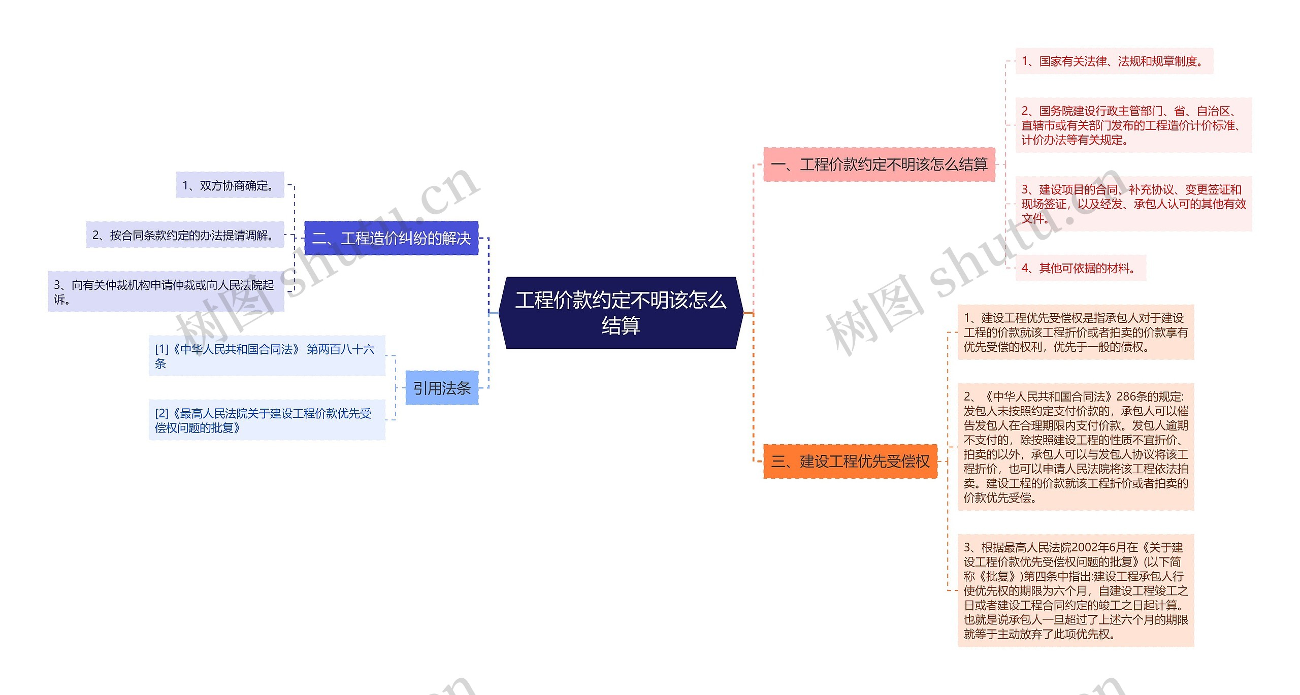 树图思维导图提供《工程价款约定不明该怎么结算》在线思维导图免费制作,点击“编辑”按钮,可对《工程价款约定不明该怎么结算》进行在线思维导图编辑,本思维导图属于思维导图模板主题,文件编号是:7c5d6466dd4ddeea036c97772888472e