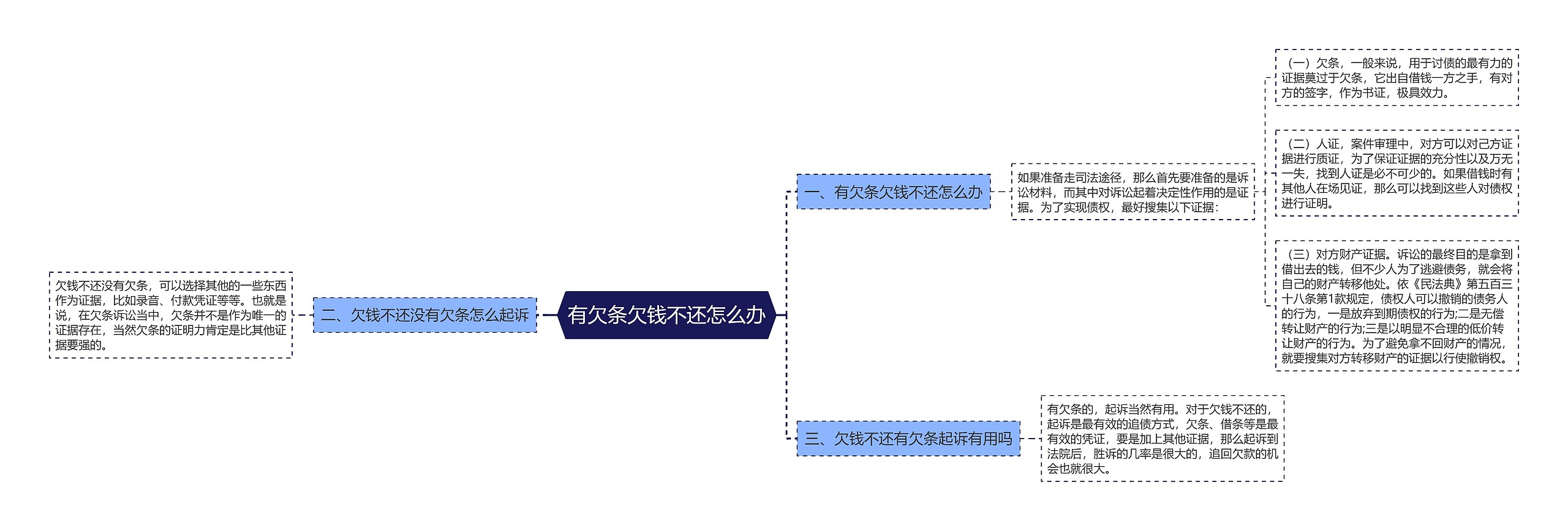 树图思维导图提供《有欠条欠钱不还怎么办》在线思维导图免费制作,点击“编辑”按钮,可对《有欠条欠钱不还怎么办》进行在线思维导图编辑,本思维导图属于思维导图模板主题,文件编号是:50783f99527c4f9fa561a5496c33f60b
