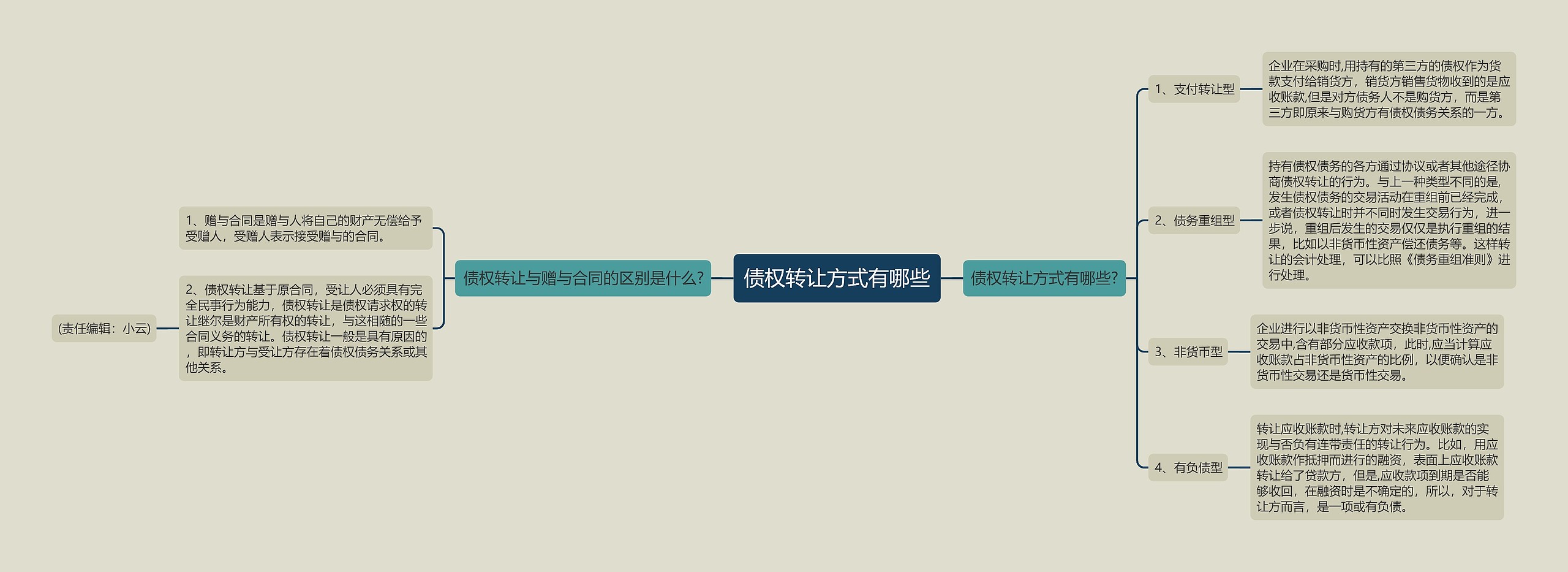 树图思维导图提供《债权转让方式有哪些》在线思维导图免费制作,点击“编辑”按钮,可对《债权转让方式有哪些》进行在线思维导图编辑,本思维导图属于思维导图模板主题,文件编号是:c1c38c6517391617509fa32d67ab850e