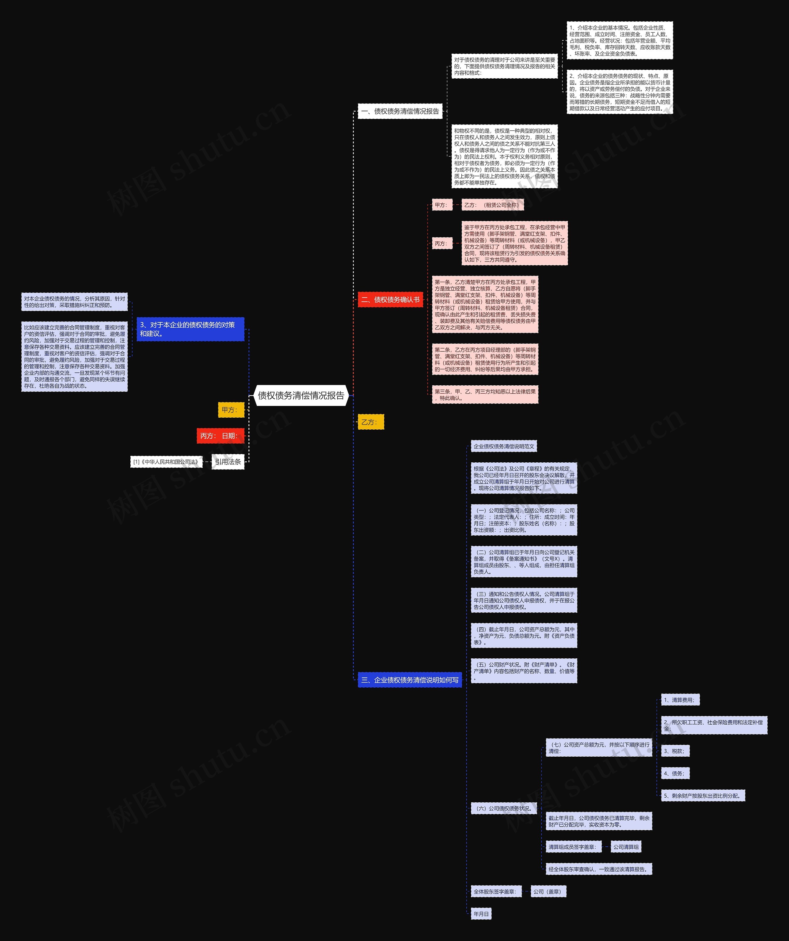 树图思维导图提供《债权债务清偿情况报告》在线思维导图免费制作,点击“编辑”按钮,可对《债权债务清偿情况报告》进行在线思维导图编辑,本思维导图属于思维导图模板主题,文件编号是:407d12f8d946d23c01884d5ddfc80bca