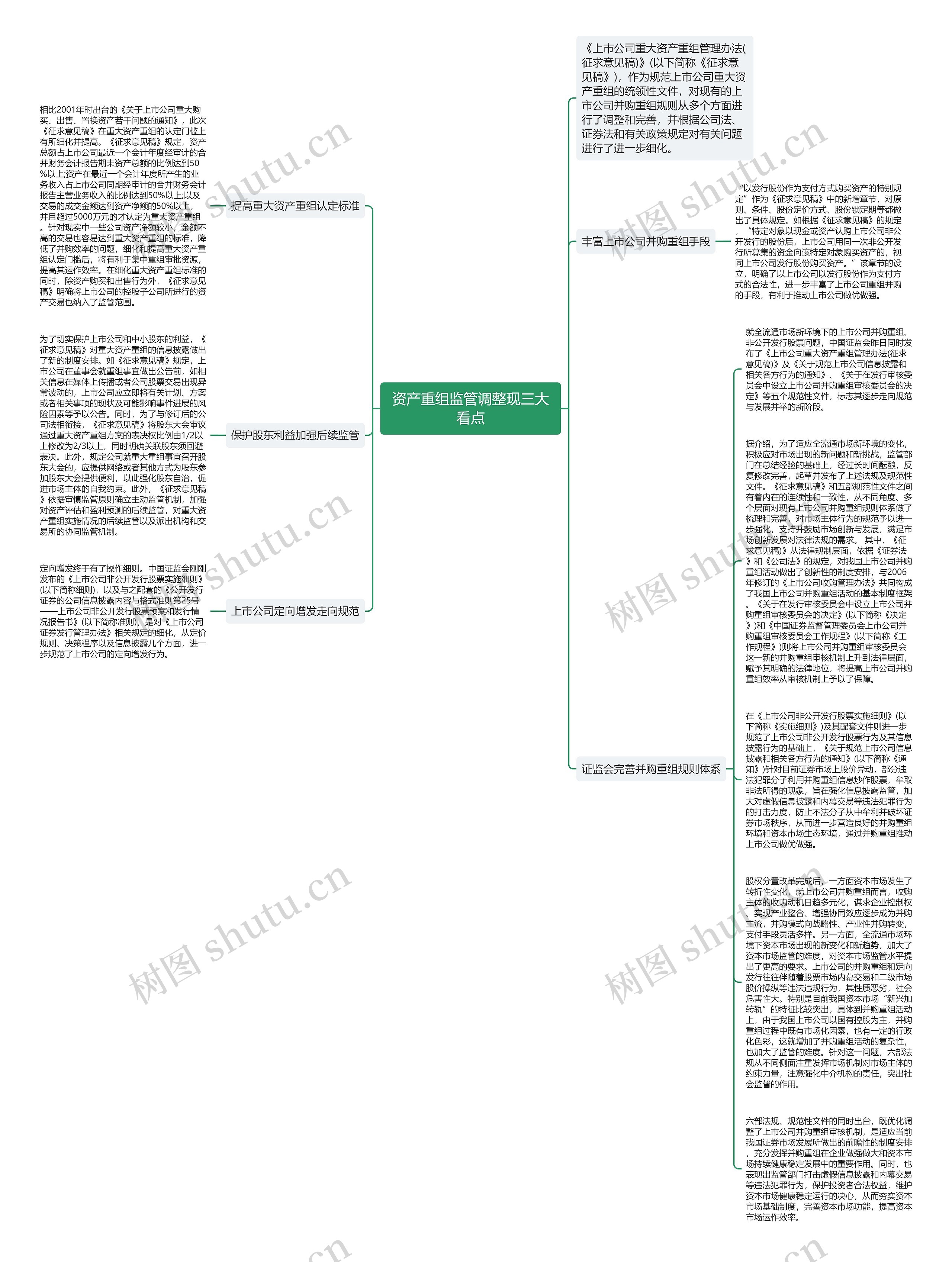 据介绍,为了适应全流通市场新环境的变化,积极应对市场出现的新问题和新挑战,监管部门在总结经验的基础上,经过长时间酝酿,反复修改完善,起草并发布了上述法规及规范性文件。《征求意见稿》和五部规范性文件之间有着内在的连续性和一致性,从不同角度、多个层面对现有上市公司并购重组规则体系做了梳理和完善,对市场主体行为的规范予以进一步强化,支持并鼓励市场创新与发展,满足市场创新发展对法律法规的需求。 其中,《征求意见稿)》从法律规制层面,依据《证券法》和《公司法》的规定,对我国上市公司并购重组活动做出了创新性的制度安排,与2006年修订的《上市公司收购管理办法》共同构成了我国上市公司并购重组活动的基本制度框架。《关于在发行审核委员会中设立上市公司并购重组审核委员会的决定》(以下简称《决定》)和《中国证券监督管理委员会上市公司并购重组审核委员会工作规程》(以下简称《工作规程》)则将上市公司并购重组审核委员会这一新的并购重组审核机制上升到法律层面,赋予其明确的法律地位,将提高上市公司并购重组效率从审核机制上予以了保障。