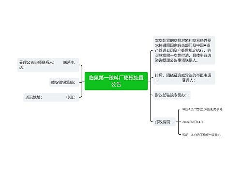 树图思维导图提供《青岛国风等11户债权处置公告》在线思维导图免费制作,点击“编辑”按钮,可对《青岛国风等11户债权处置公告》进行在线思维导图编辑,本思维导图属于思维导图模板主题,文件编号是:c0ed2a8daf97ca7377d567b0a6b7459a