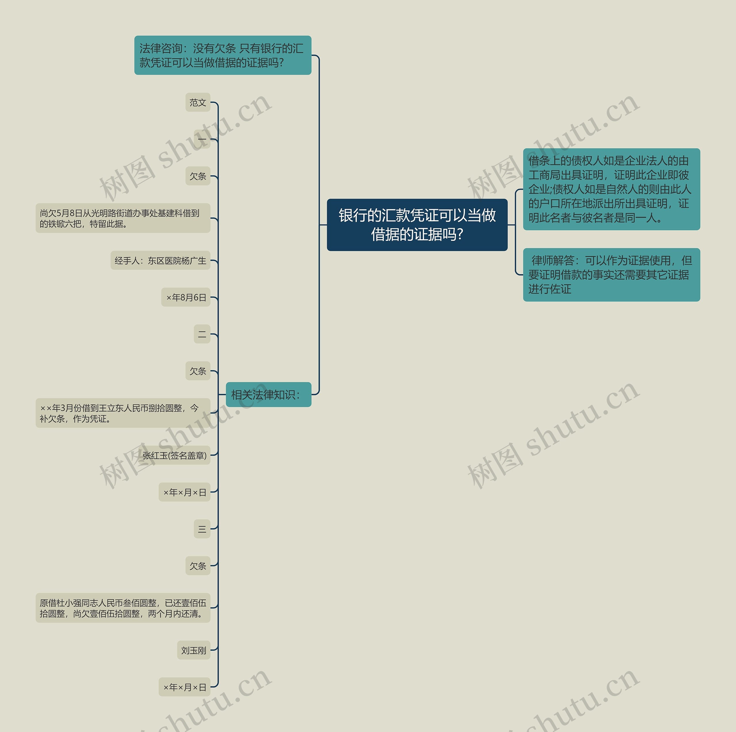 树图思维导图提供《银行的汇款凭证可以当做借据的证据吗?》在线思维导图免费制作,点击“编辑”按钮,可对《银行的汇款凭证可以当做借据的证据吗?》进行在线思维导图编辑,本思维导图属于思维导图模板主题,文件编号是:104897f8c1487efbaf5ba2956f29551c