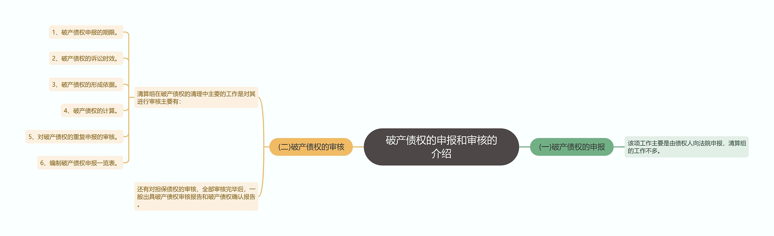 树图思维导图提供《破产债权的申报和审核的介绍》在线思维导图免费制作,点击“编辑”按钮,可对《破产债权的申报和审核的介绍》进行在线思维导图编辑,本思维导图属于思维导图模板主题,文件编号是:67630a565a169b618e0a68f62bb7e82a
