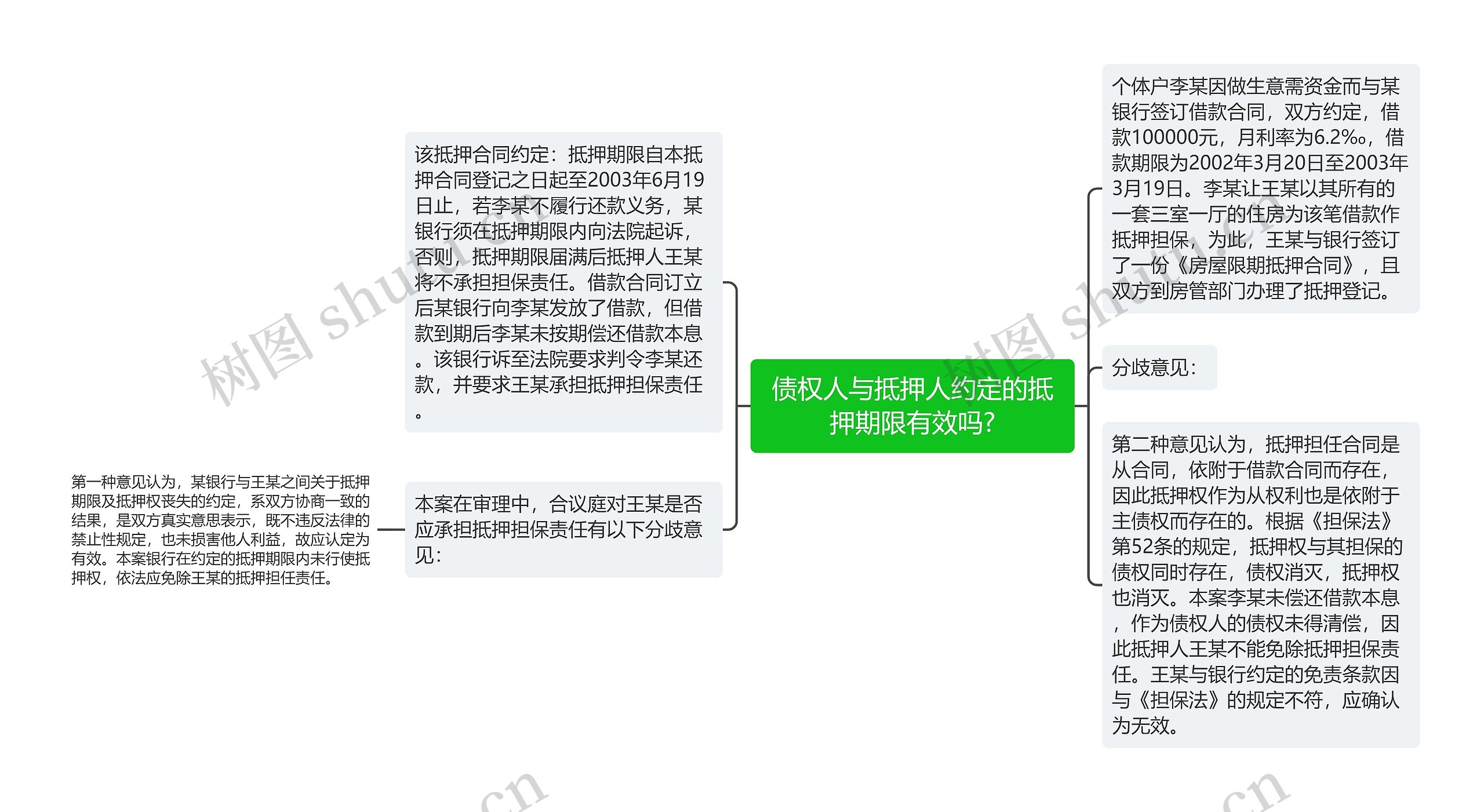 第一种意见认为,某银行与王某之间关于抵押期限及抵押权丧失的约定,系双方协商一致的结果,是双方真实意思表示,既不违反法律的禁止性规定,也未损害他人利益,故应认定为有效。本案银行在约定的抵押期限内未行使抵押权,依法应免除王某的抵押担任责任。