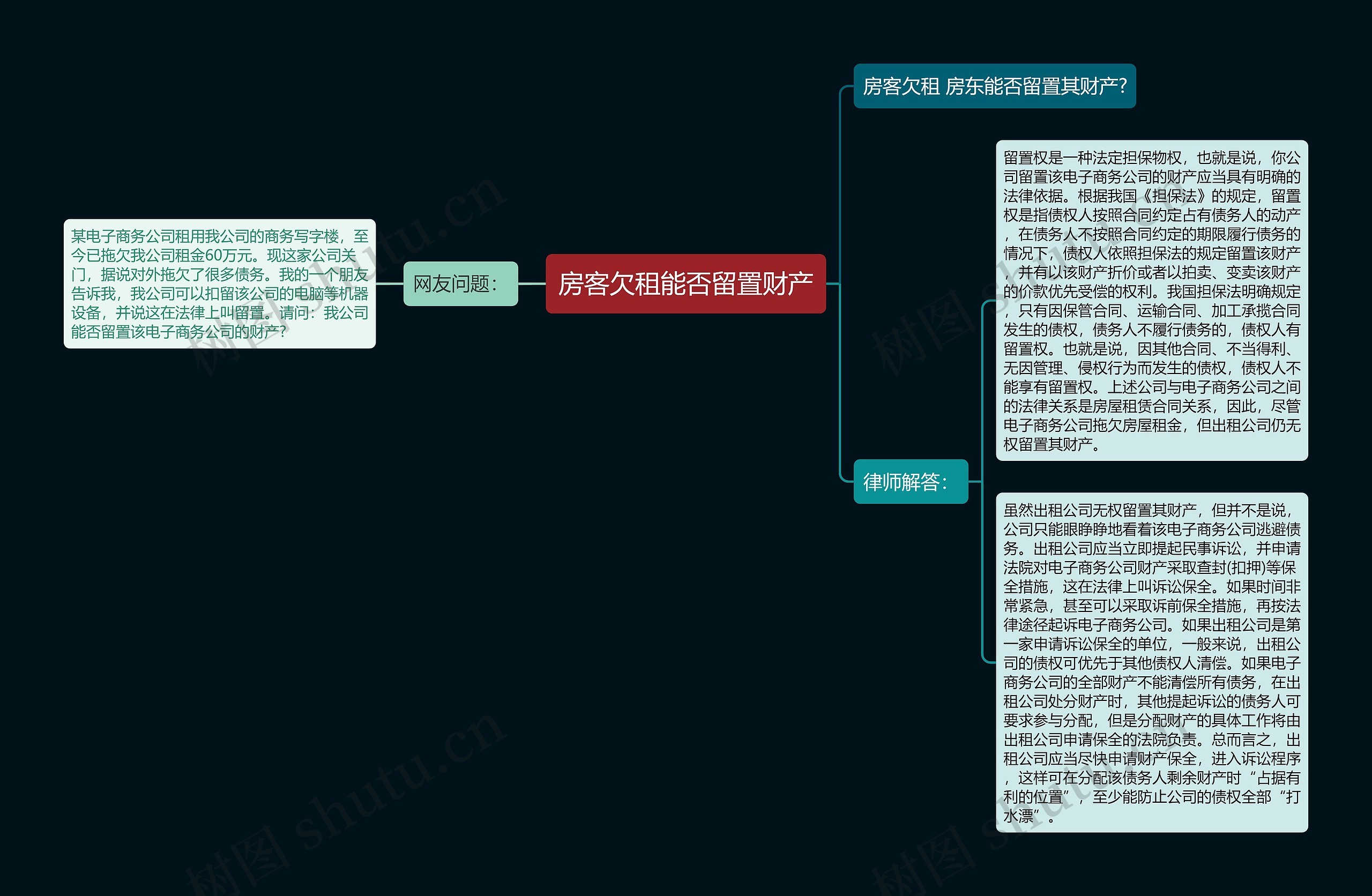 树图思维导图提供《房客欠租能否留置财产》在线思维导图免费制作,点击“编辑”按钮,可对《房客欠租能否留置财产》进行在线思维导图编辑,本思维导图属于思维导图模板主题,文件编号是:63cc6355d9d46dee3d1c0a873073d7a4