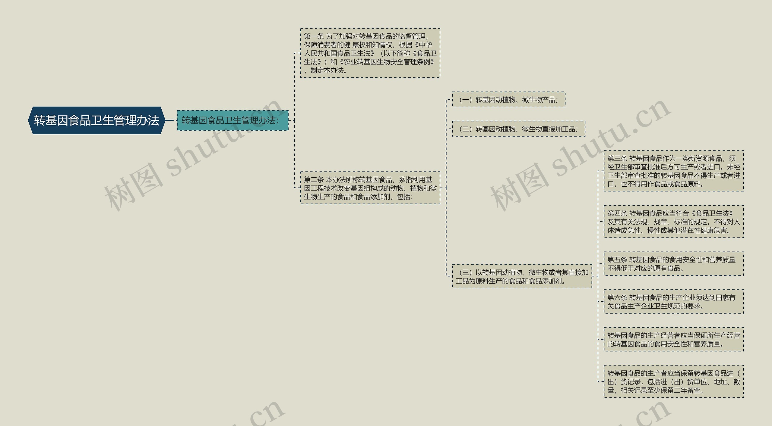 树图思维导图提供《转基因食品卫生管理办法》在线思维导图免费制作,点击“编辑”按钮,可对《转基因食品卫生管理办法》进行在线思维导图编辑,本思维导图属于思维导图模板主题,文件编号是:c343b3b6dd21073a61cbf812d3f5c5ee