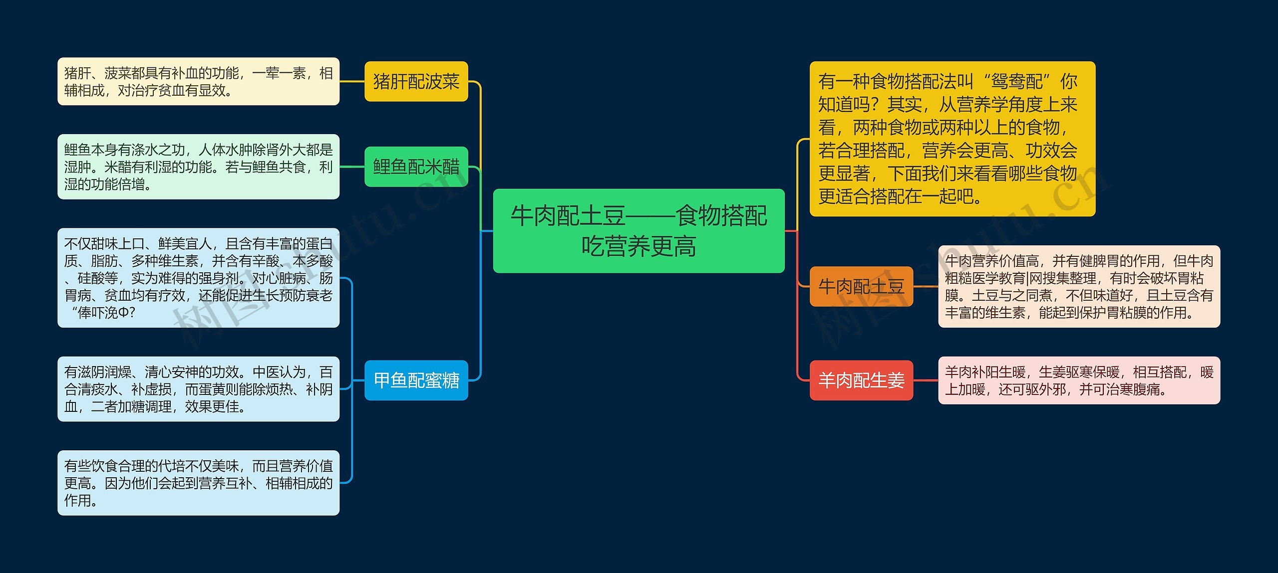 树图思维导图提供《牛肉配土豆——食物搭配吃营养更高》在线思维导图免费制作,点击“编辑”按钮,可对《牛肉配土豆——食物搭配吃营养更高》进行在线思维导图编辑,本思维导图属于思维导图模板主题,文件编号是:1c8d503f1db225671989a6c757851817