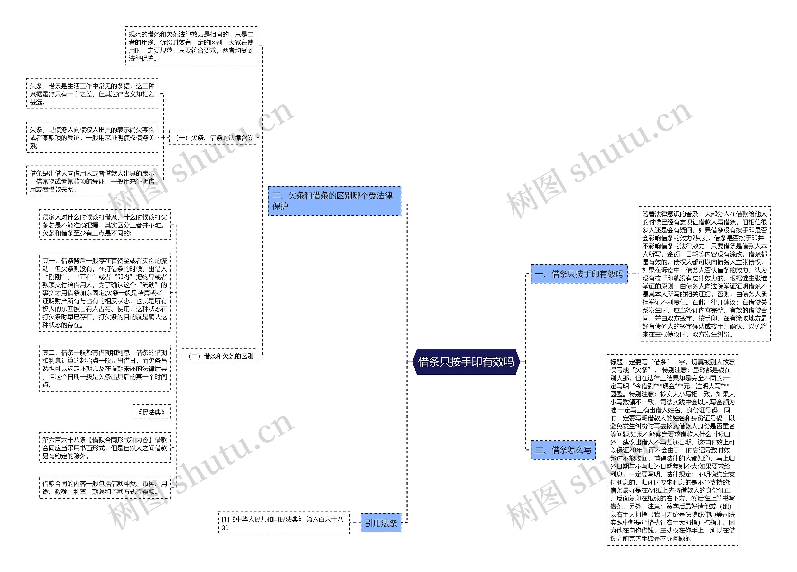 树图思维导图提供《借条只按手印有效吗》在线思维导图免费制作,点击“编辑”按钮,可对《借条只按手印有效吗》进行在线思维导图编辑,本思维导图属于思维导图模板主题,文件编号是:957a2da944b7f5fa40a7feda44aaa8d2
