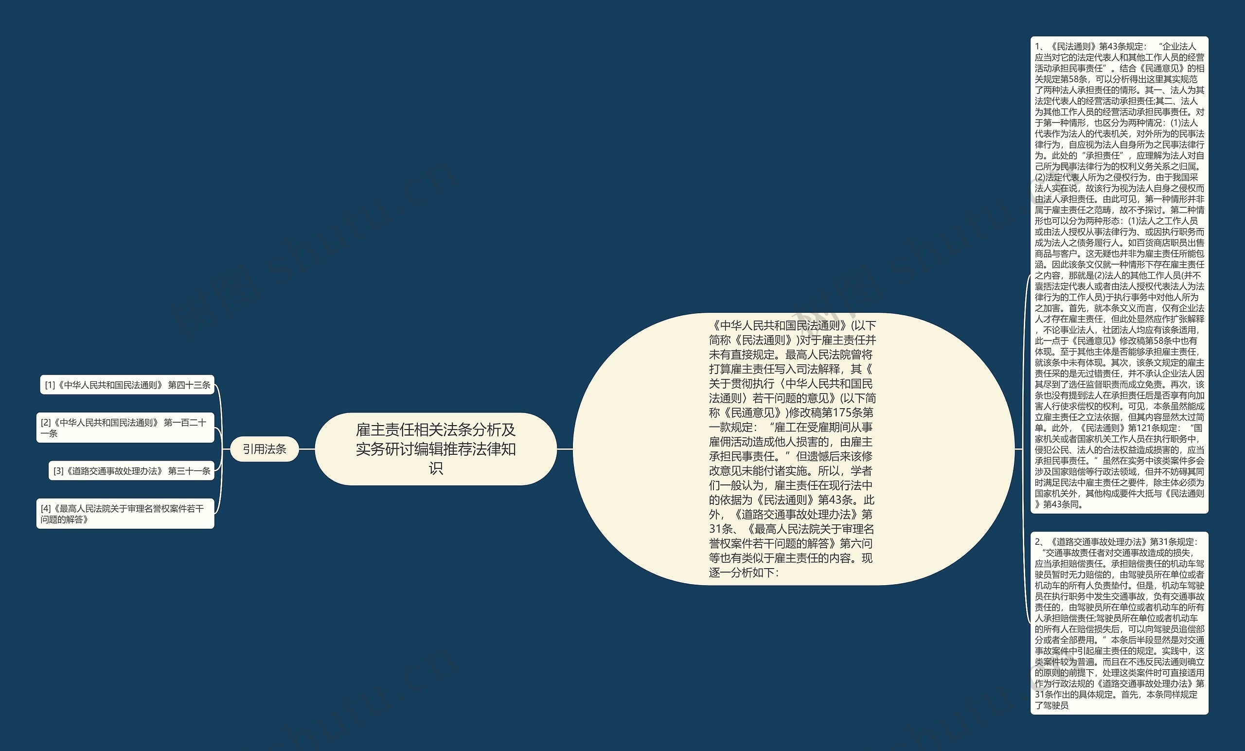 1、《民法通则》第43条规定: “企业法人应当对它的法定代表人和其他工作人员的经营活动承担民事责任”。结合《民通意见》的相关规定第58条,可以分析得出这里其实规范了两种法人承担责任的情形。其一、法人为其法定代表人的经营活动承担责任;其二、法人为其他工作人员的经营活动承担民事责任。对于第一种情形,也区分为两种情况:(1)法人代表作为法人的代表机关,对外所为的民事法律行为,自应视为法人自身所为之民事法律行为。此处的“承担责任”,应理解为法人对自己所为民事法律行为的权利义务关系之归属。(2)法定代表人所为之侵权行为,由于我国采法人实在说,故该行为视为法人自身之侵权而由法人承担责任。由此可见,第一种情形并非属于雇主责任之范畴,故不予探讨。第二种情形也可以分为两种形态:(1)法人之工作人员或由法人授权从事法律行为、或因执行职务而成为法人之债务履行人。如百货商店职员出售商品与客户。这无疑也并非为雇主责任所能包涵。因此该条文仅就一种情形下存在雇主责任之内容,那就是(2)法人的其他工作人员(并不囊括法定代表人或者由法人授权代表法人为法律行为的工作人员)于执行事务中对他人所为之加害。首先,就本条文义而言,仅有企业法人才存在雇主责任,但此处显然应作扩张解释,不论事业法人,社团法人均应有该条适用,此一点于《民通意见》修改稿第58条中也有体现。至于其他主体是否能够承担雇主责任,就该条中未有体现。其次,该条文规定的雇主责任采的是无过错责任,并不承认企业法人因其尽到了选任监督职责而成立免责。再次,该条也没有提到法人在承担责任后是否享有向加害人行使求偿权的权利。可见,本条虽然能成立雇主责任之立法依据,但其内容显然太过简单。此外,《民法通则》第121条规定:“国家机关或者国家机关工作人员在执行职务中,侵犯公民、法人的合法权益造成损害的,应当承担民事责任。”虽然在实务中该类案件多会涉及国家赔偿等行政法领域,但并不妨碍其同时满足民法中雇主责任之要件,除主体必须为国家机关外,其他构成要件大抵与《民法通则》第43条同。