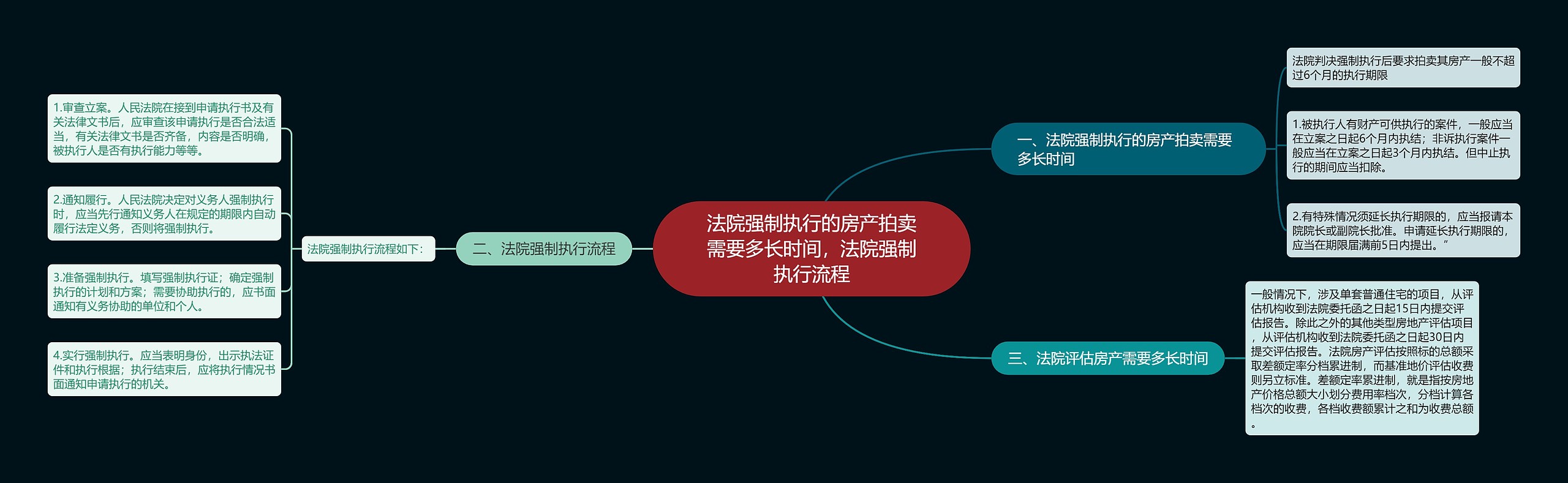 树图思维导图提供《法院强制执行的房产拍卖需要多长时间,法院强制执行流程》在线思维导图免费制作,点击“编辑”按钮,可对《法院强制执行的房产拍卖需要多长时间,法院强制执行流程》进行在线思维导图编辑,本思维导图属于思维导图模板主题,文件编号是:9379adb2720fb3b7e7127f35c8fffff4