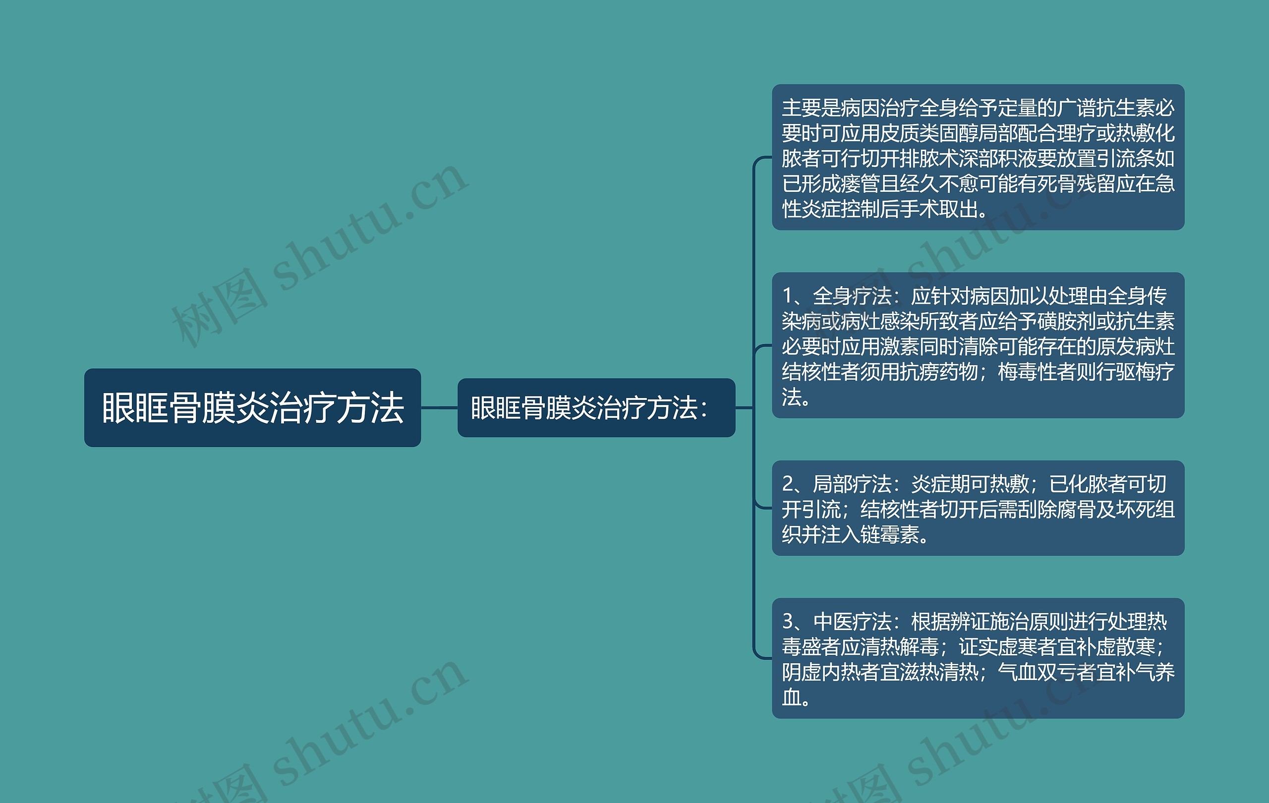 树图思维导图提供《眼眶骨膜炎治疗方法》在线思维导图免费制作,点击“编辑”按钮,可对《眼眶骨膜炎治疗方法》进行在线思维导图编辑,本思维导图属于思维导图模板主题,文件编号是:a656cf086d127efb1044037cf04a5915
