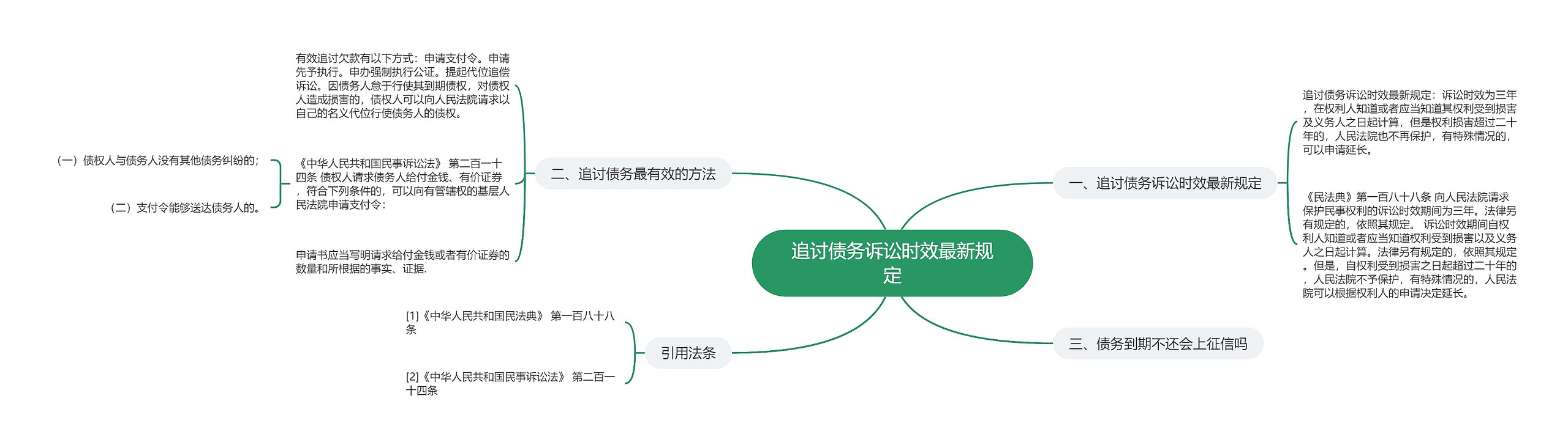 树图思维导图提供《追讨债务诉讼时效最新规定》在线思维导图免费制作,点击“编辑”按钮,可对《追讨债务诉讼时效最新规定》进行在线思维导图编辑,本思维导图属于思维导图模板主题,文件编号是:96f3cbbde749b377aa677208b3edf748