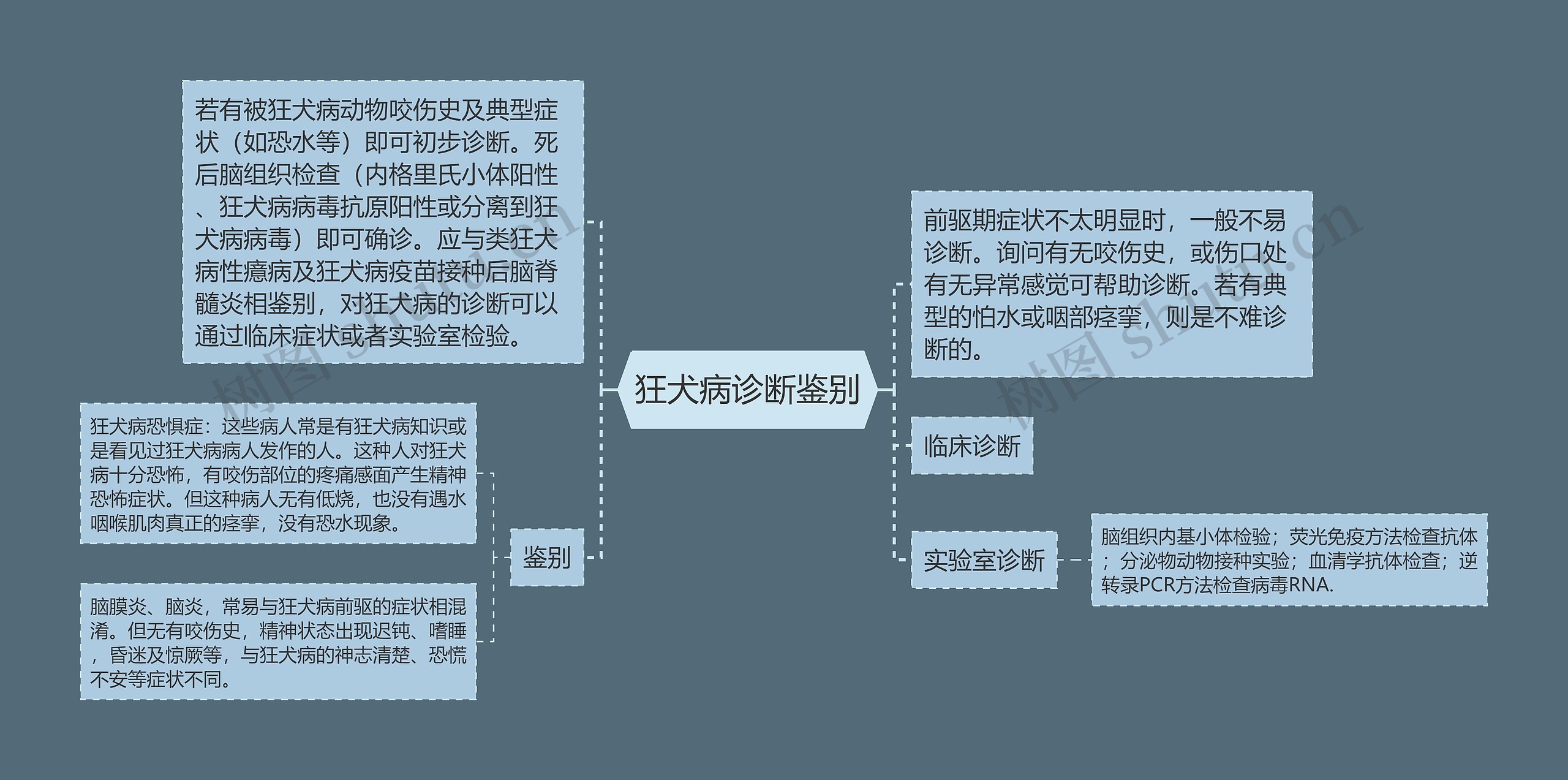 树图思维导图提供《狂犬病诊断鉴别》在线思维导图免费制作,点击“编辑”按钮,可对《狂犬病诊断鉴别》进行在线思维导图编辑,本思维导图属于思维导图模板主题,文件编号是:5eb159ab45013ad13b35561efda31565