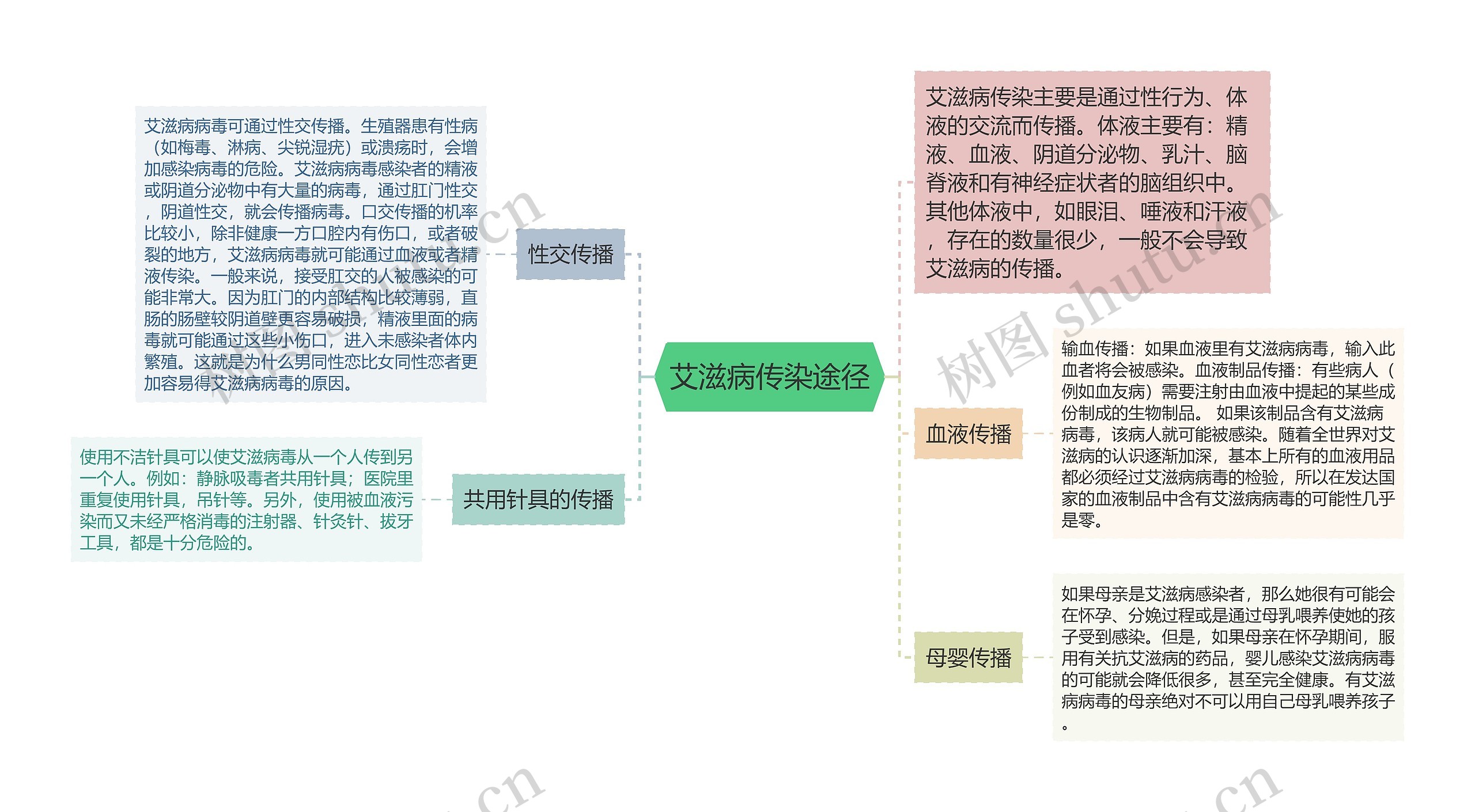 树图思维导图提供《艾滋病传染途径》在线思维导图免费制作,点击“编辑”按钮,可对《艾滋病传染途径》进行在线思维导图编辑,本思维导图属于思维导图模板主题,文件编号是:673aa3f17630bd769e33744bb02c94df