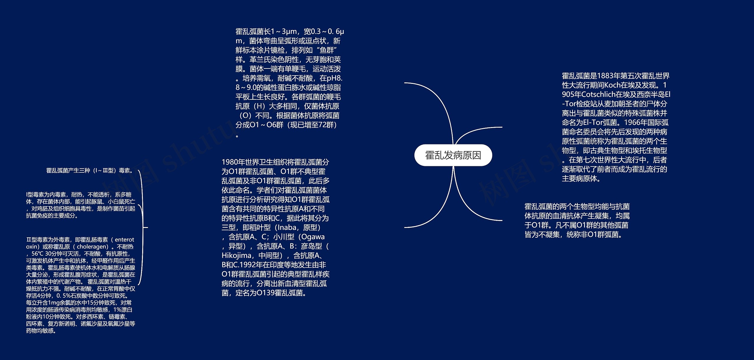 1980年世界卫生组织将霍乱弧菌分为O1群霍乱弧菌、O1群不典型霍乱弧菌及非O1群霍乱弧菌,此后多依此命名。学者们对霍乱弧菌菌体抗原进行分析研究得知O1群霍乱弧菌含有共同的特异性抗原A和不同的特异性抗原B和C,据此将其分为三型,即稻叶型(Inaba,原型),含抗原A、C;小川型(Ogawa,异型),含抗原A、B:彦岛型(Hikojima,中间型),含抗原A、B和C.1992年在印度等地发生由非O1群霍乱弧菌引起的典型霍乱样疾病的流行,分离出新血清型霍乱弧菌,定名为O139霍乱弧菌。