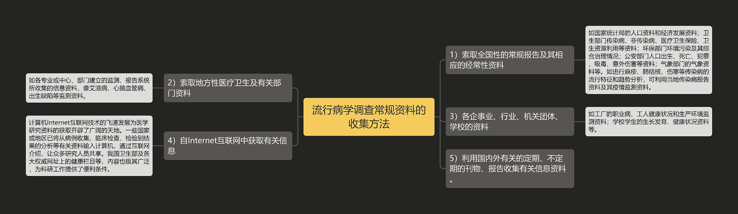 树图思维导图提供《流行病学调查常规资料的收集方法》在线思维导图免费制作,点击“编辑”按钮,可对《流行病学调查常规资料的收集方法》进行在线思维导图编辑,本思维导图属于思维导图模板主题,文件编号是:cb0473798ccf979fc5cc587819868d5d