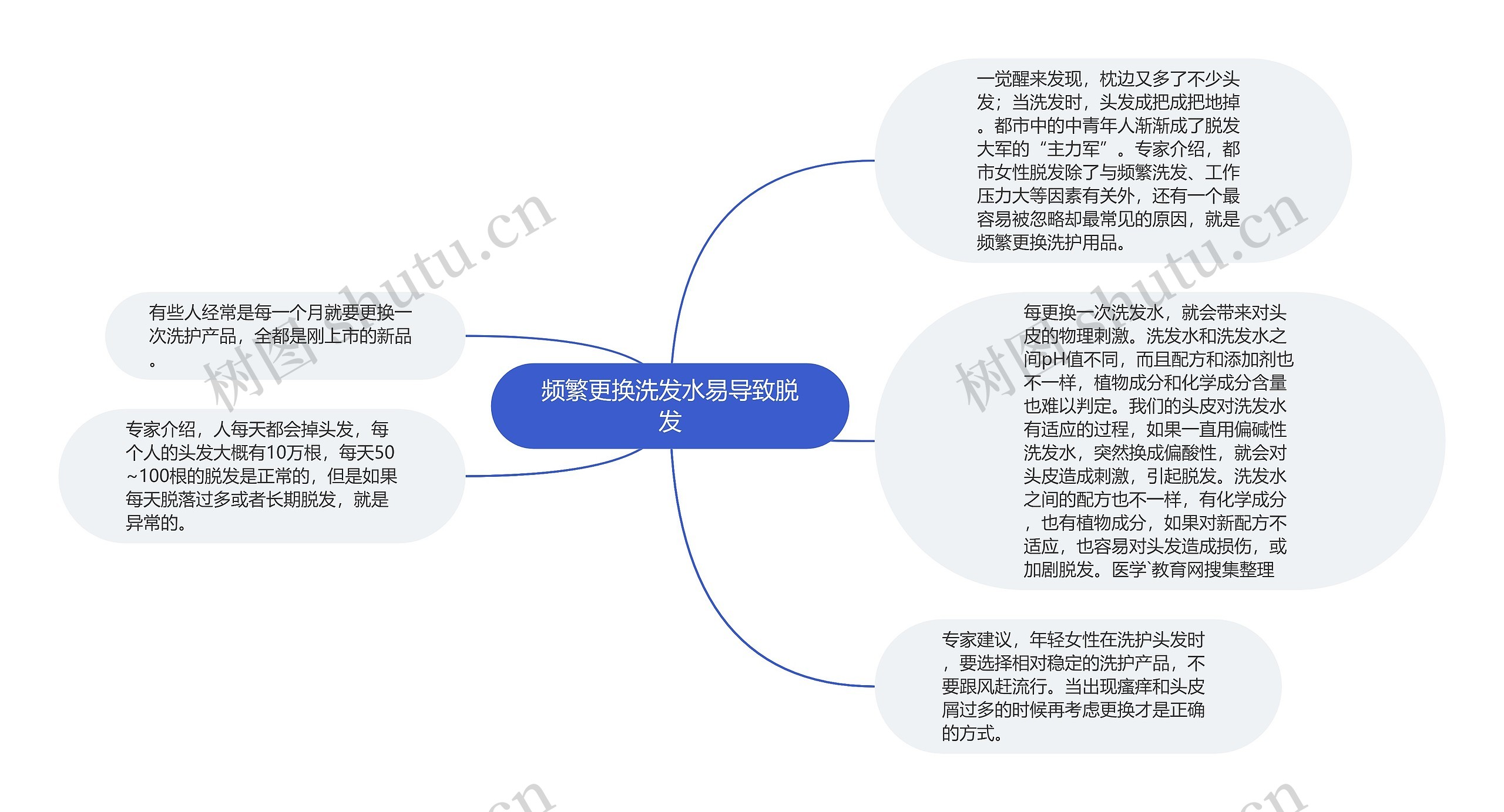 树图思维导图提供《频繁更换洗发水易导致脱发》在线思维导图免费制作,点击“编辑”按钮,可对《频繁更换洗发水易导致脱发》进行在线思维导图编辑,本思维导图属于思维导图模板主题,文件编号是:bb889be3daa2faa7723357a3e2f10ee4