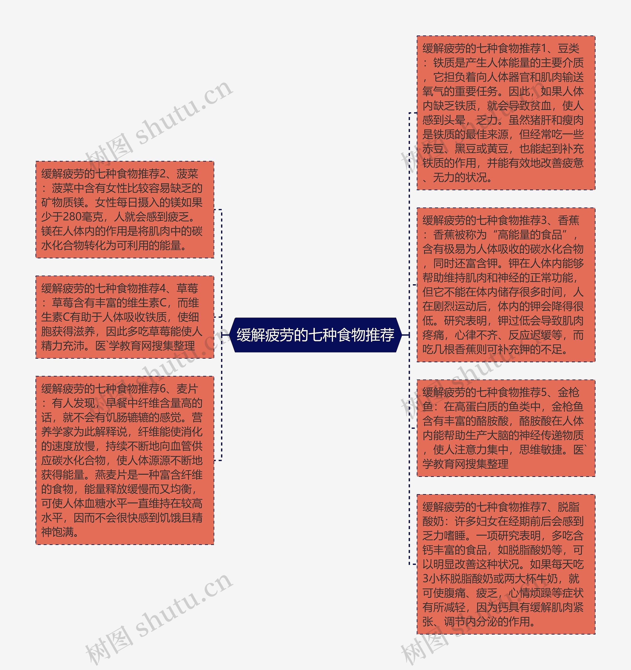 缓解疲劳的七种食物推荐4、草莓:草莓含有丰富的维生素C,而维生素C有助于人体吸收铁质,使细胞获得滋养,因此多吃草莓能使人精力充沛。医`学教育网搜集整理