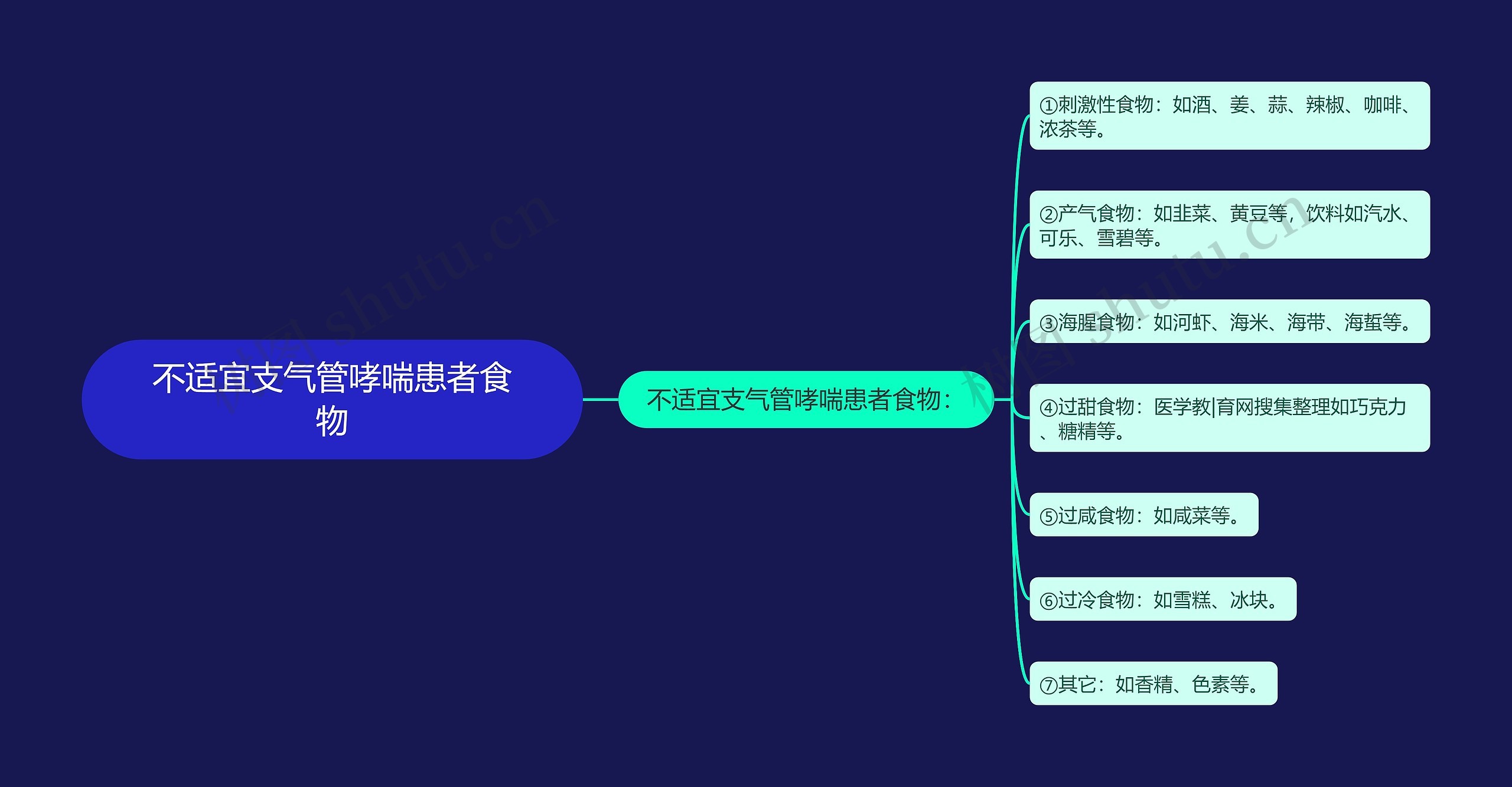 树图思维导图提供《不适宜支气管哮喘患者食物》在线思维导图免费制作,点击“编辑”按钮,可对《不适宜支气管哮喘患者食物》进行在线思维导图编辑,本思维导图属于思维导图模板主题,文件编号是:dd0a4f4d524ecf13965b4a45e129dd5c