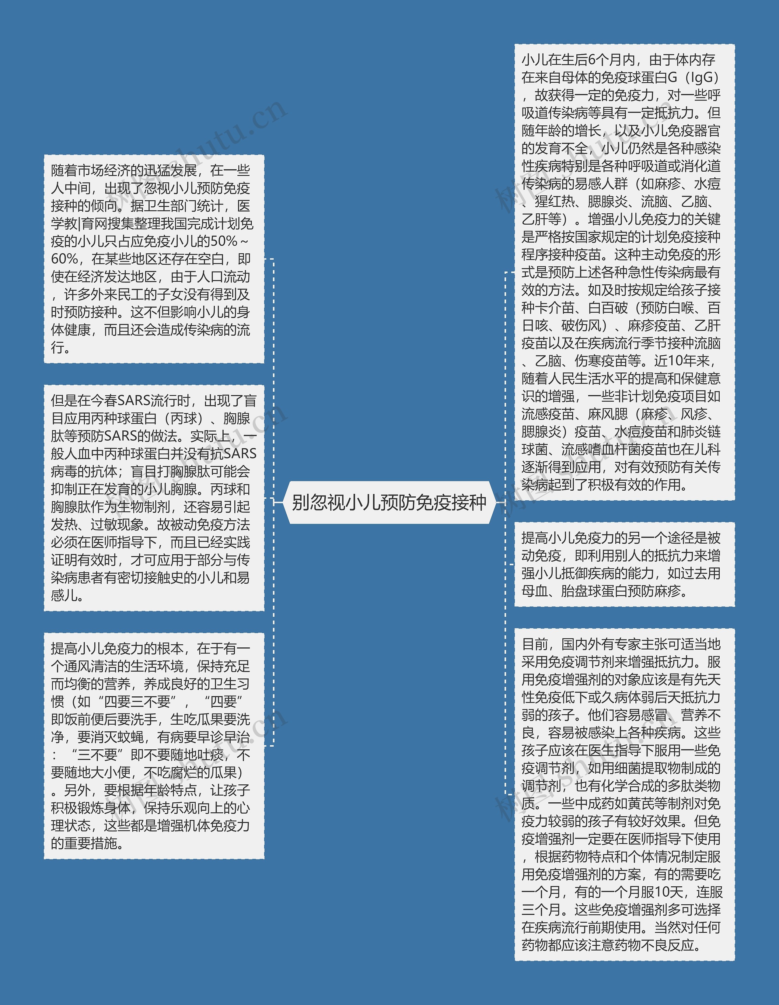 提高小儿免疫力的另一个途径是被动免疫,即利用别人的抵抗力来增强小儿抵御疾病的能力,如过去用母血、胎盘球蛋白预防麻疹。